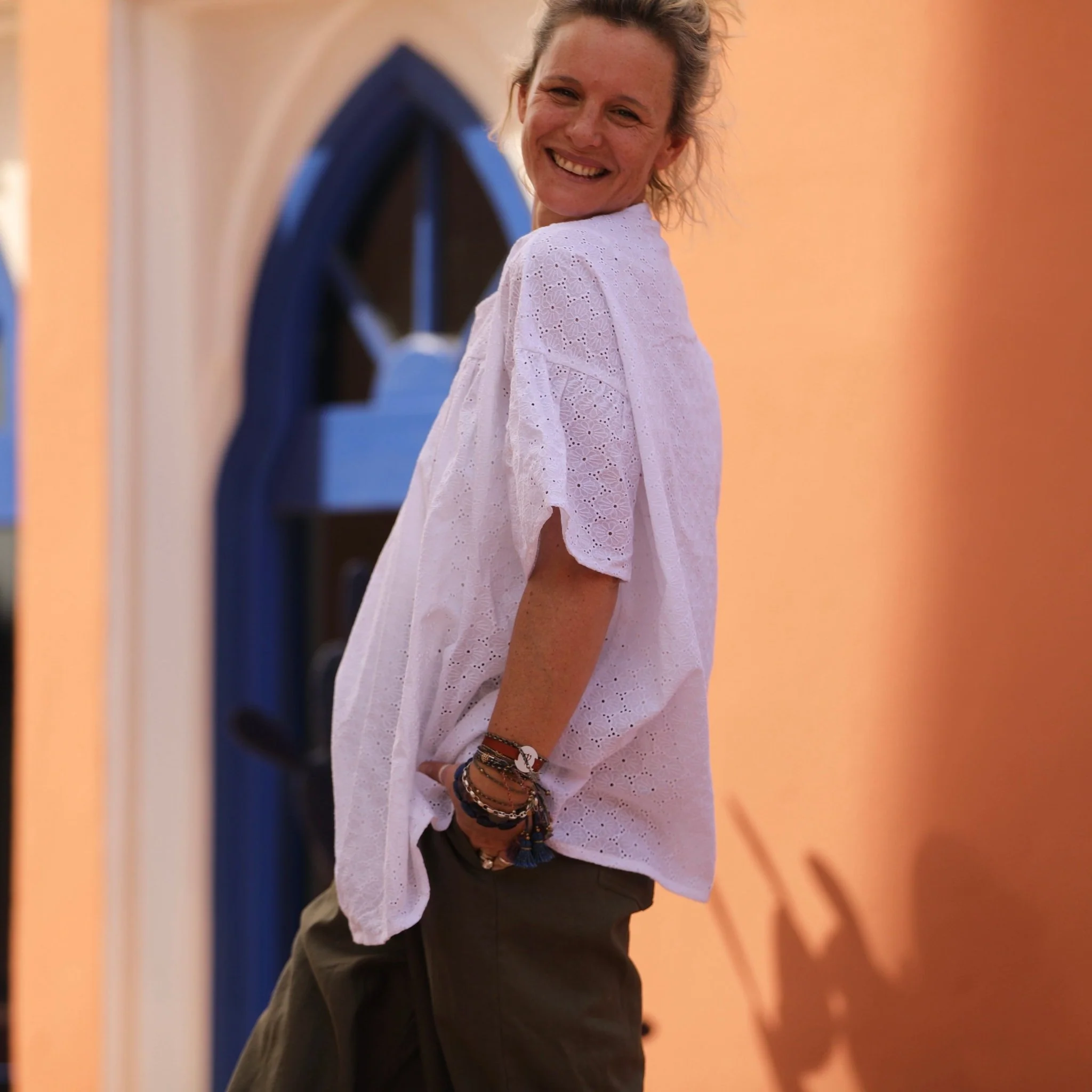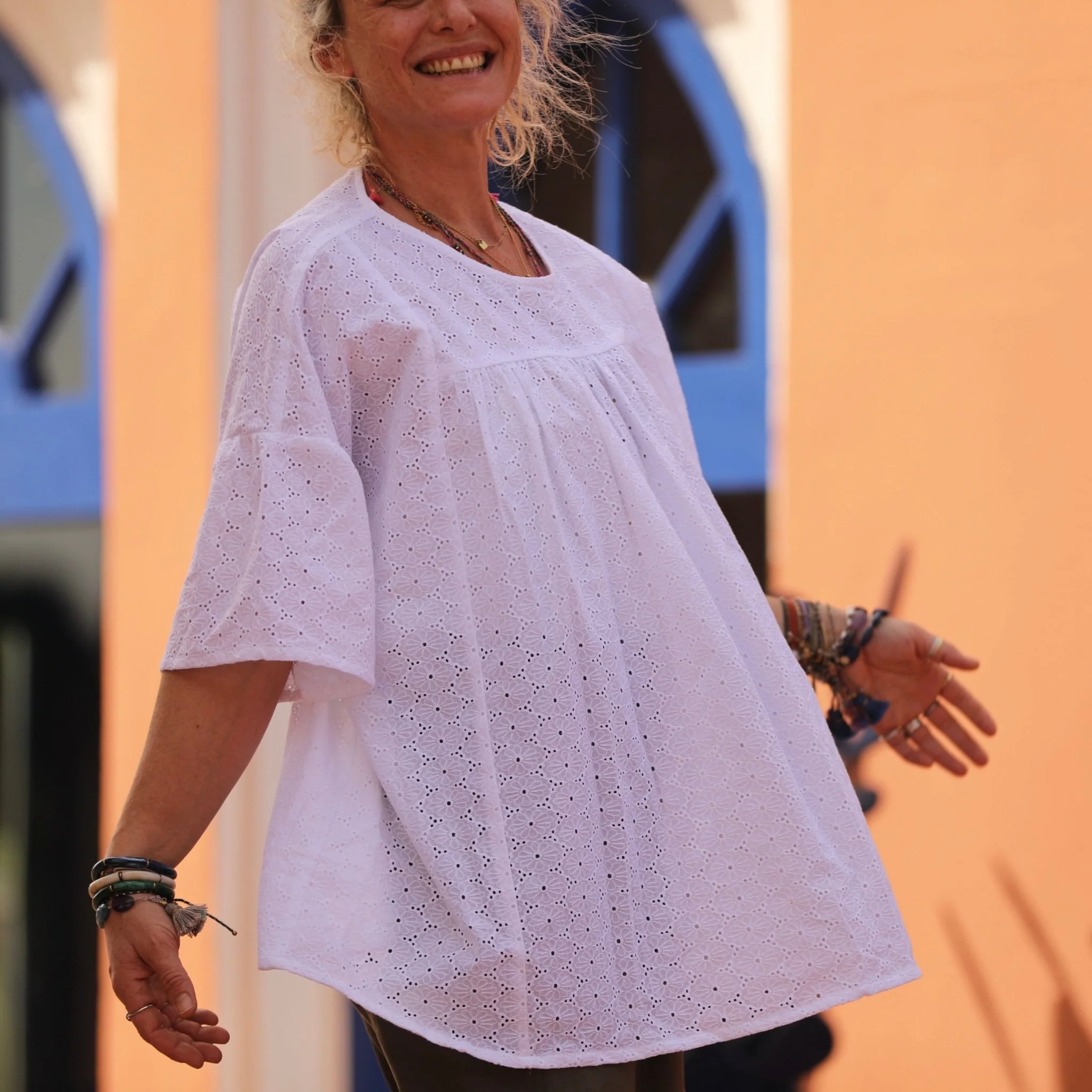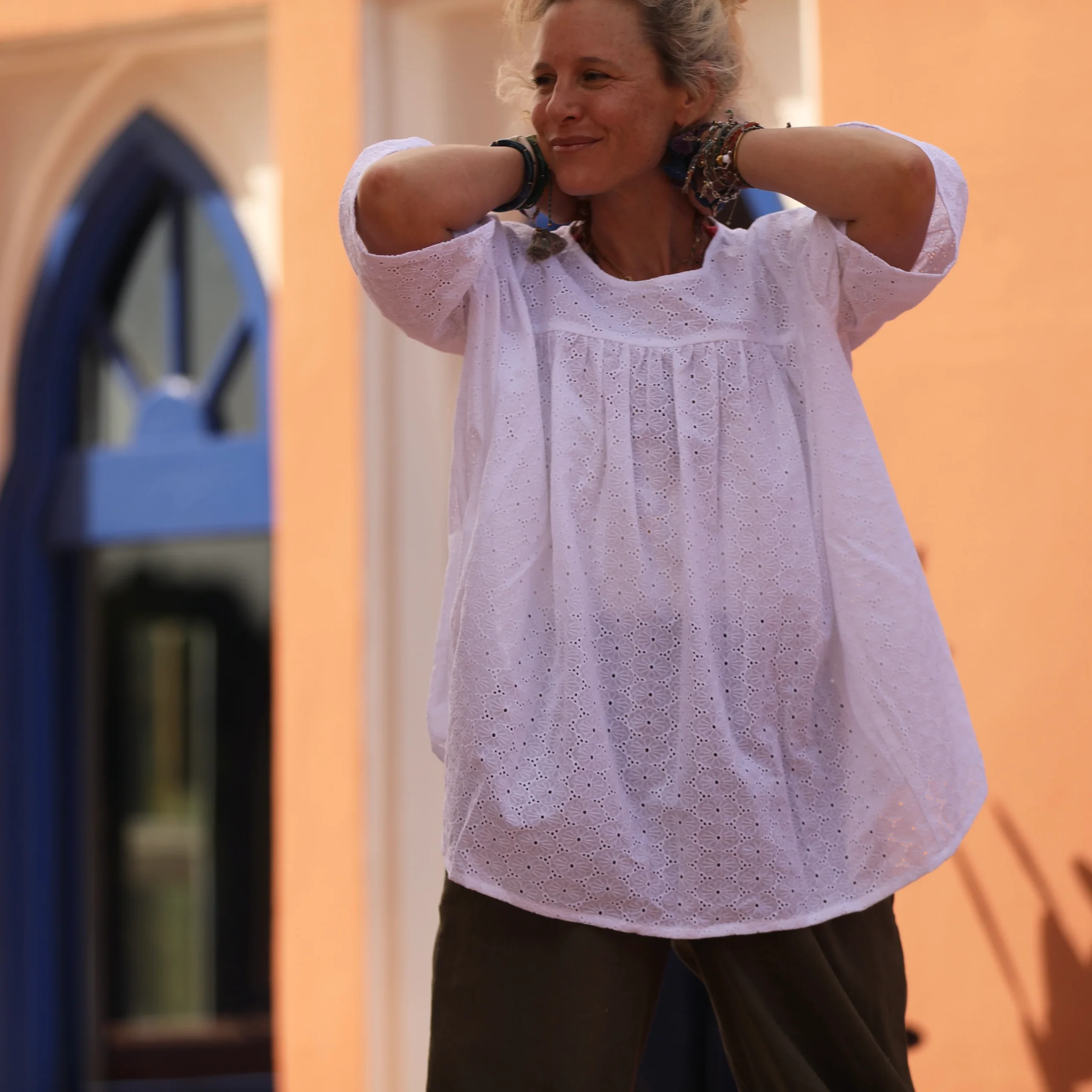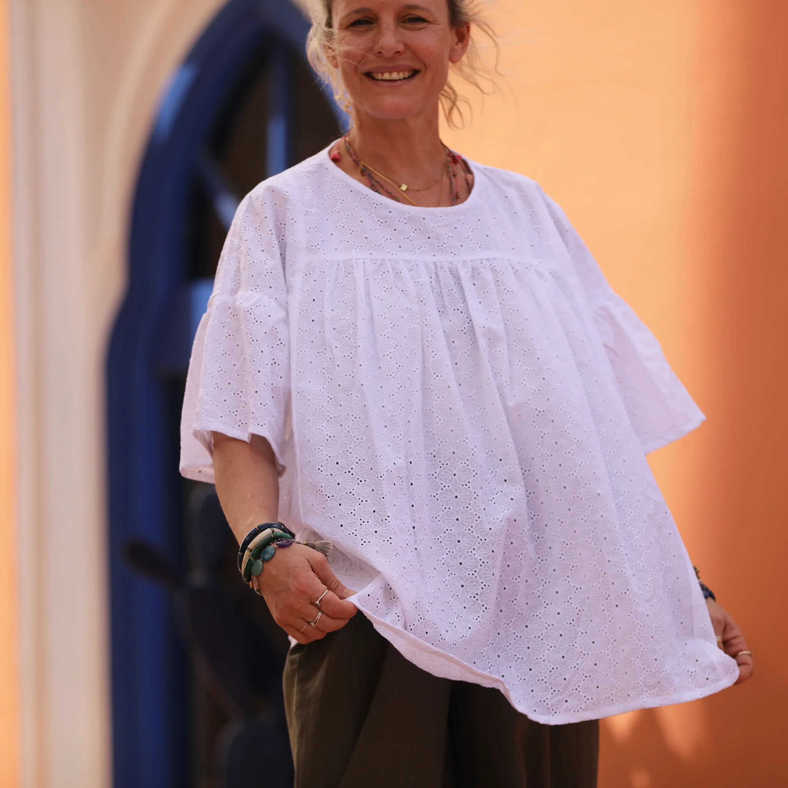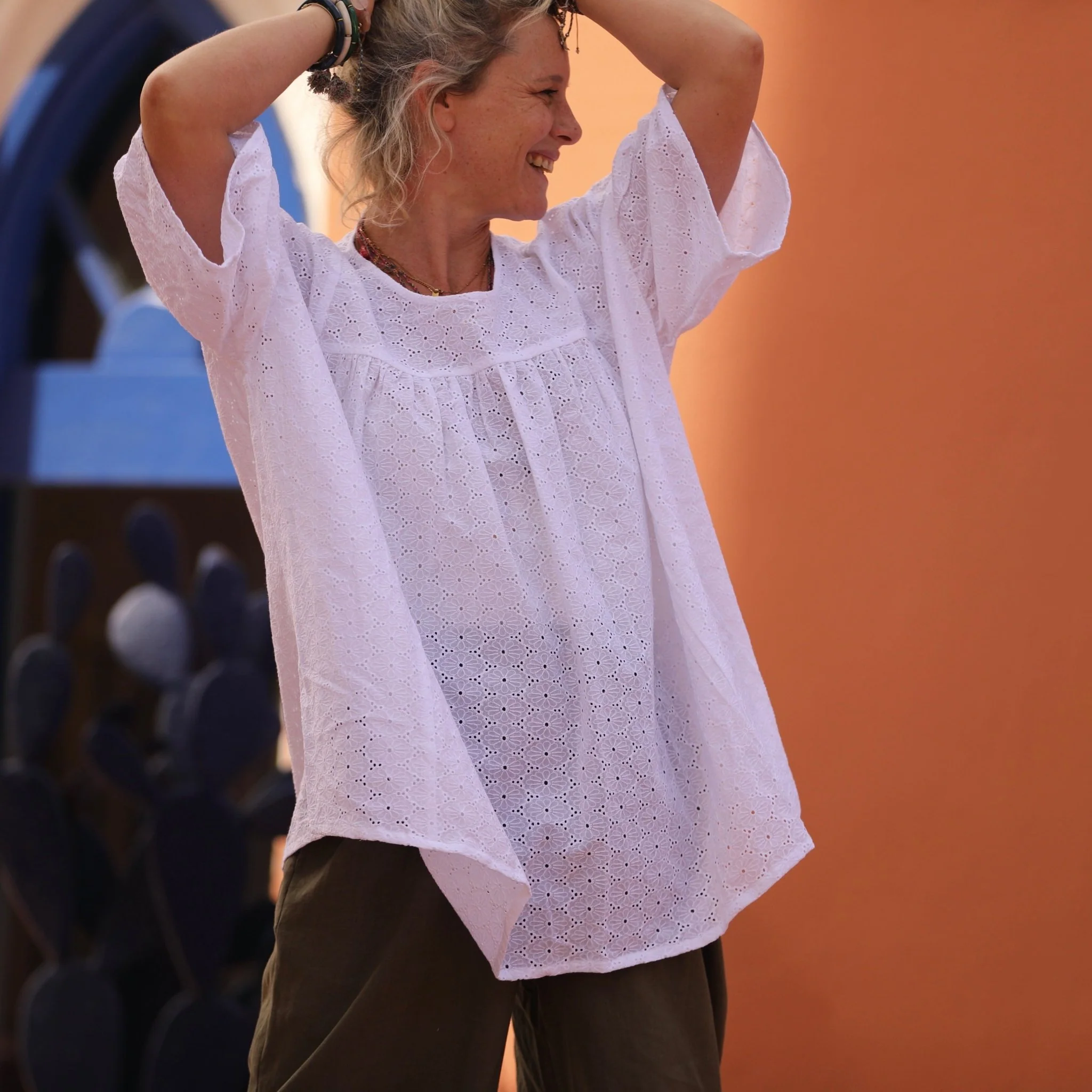 Léopoldine est une blouse élégante et structurée au volume généreux. Elle se distingue par son col rond chic, ses manches papillonnantes, ainsi que ses découpes et fronces au-dessus de la poitrine, offrant une allure à la fois casual et subtilement japonisante. Taille unique Composition : 100% coton Fabrication : Française, réalisée avec soin dans notre […]