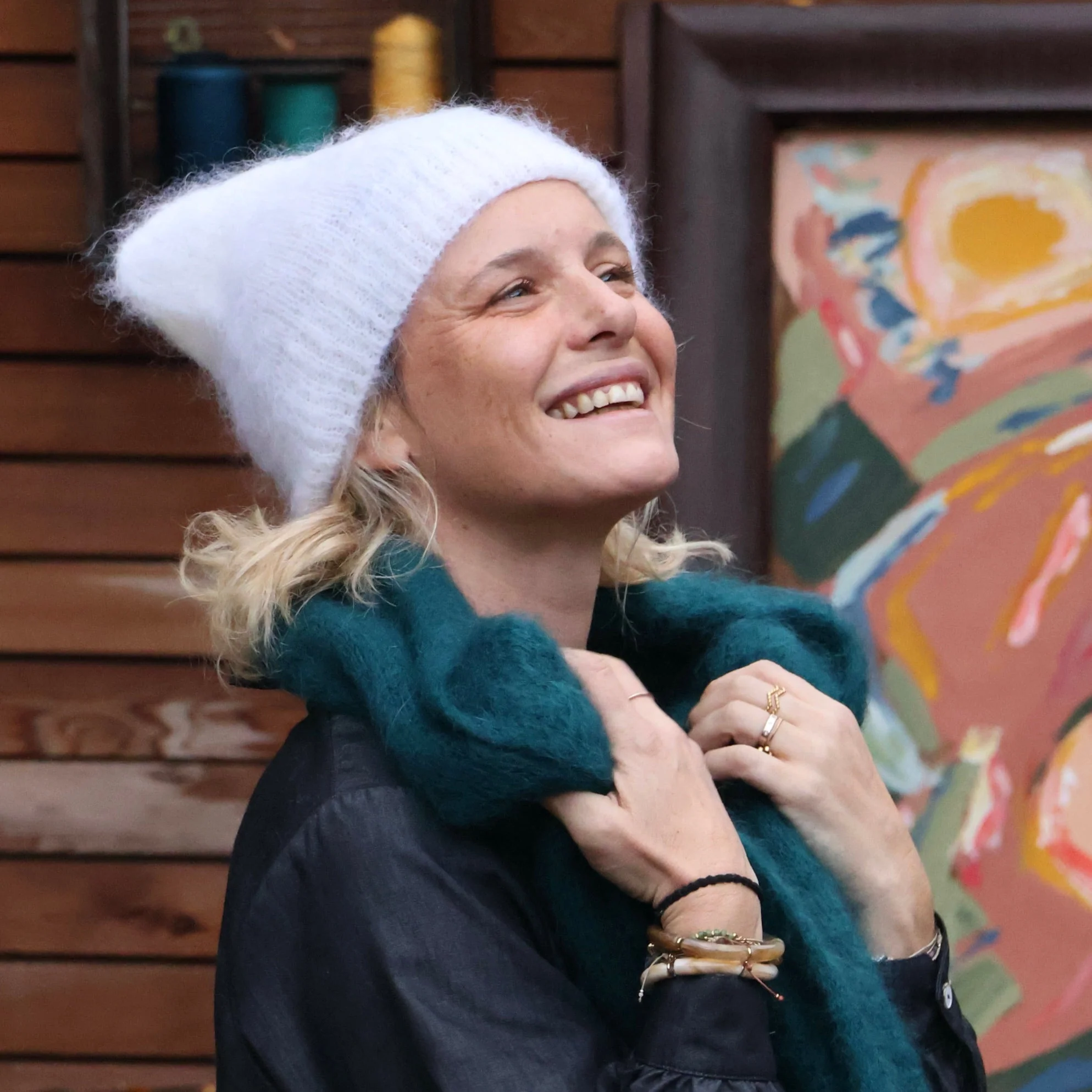 Découvrez ce bonnet, conçu avec une maille douce et aérienne, parfait pour les journées froides, et composé principalement de kid mohair.