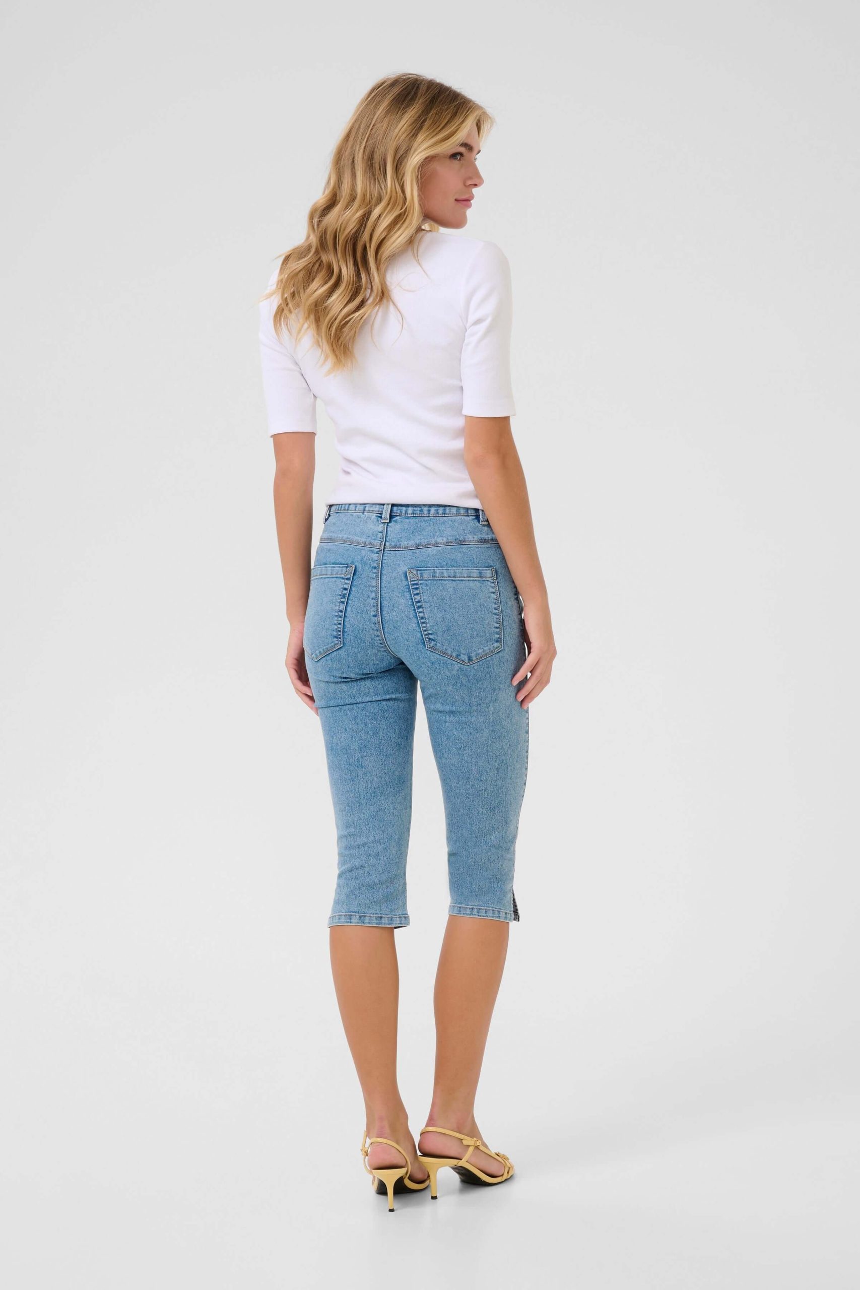 Description: Ce capri en denim extensible combine confort et allure moderne avec sa coupe ajustée et sa longueur sous le genou. Parfait pour les journées ensoleillées, il s’agence facilement avec un haut simple ou plus sophistiqué. On aime les petits détails pratiques qui rehaussent sa silhouette.