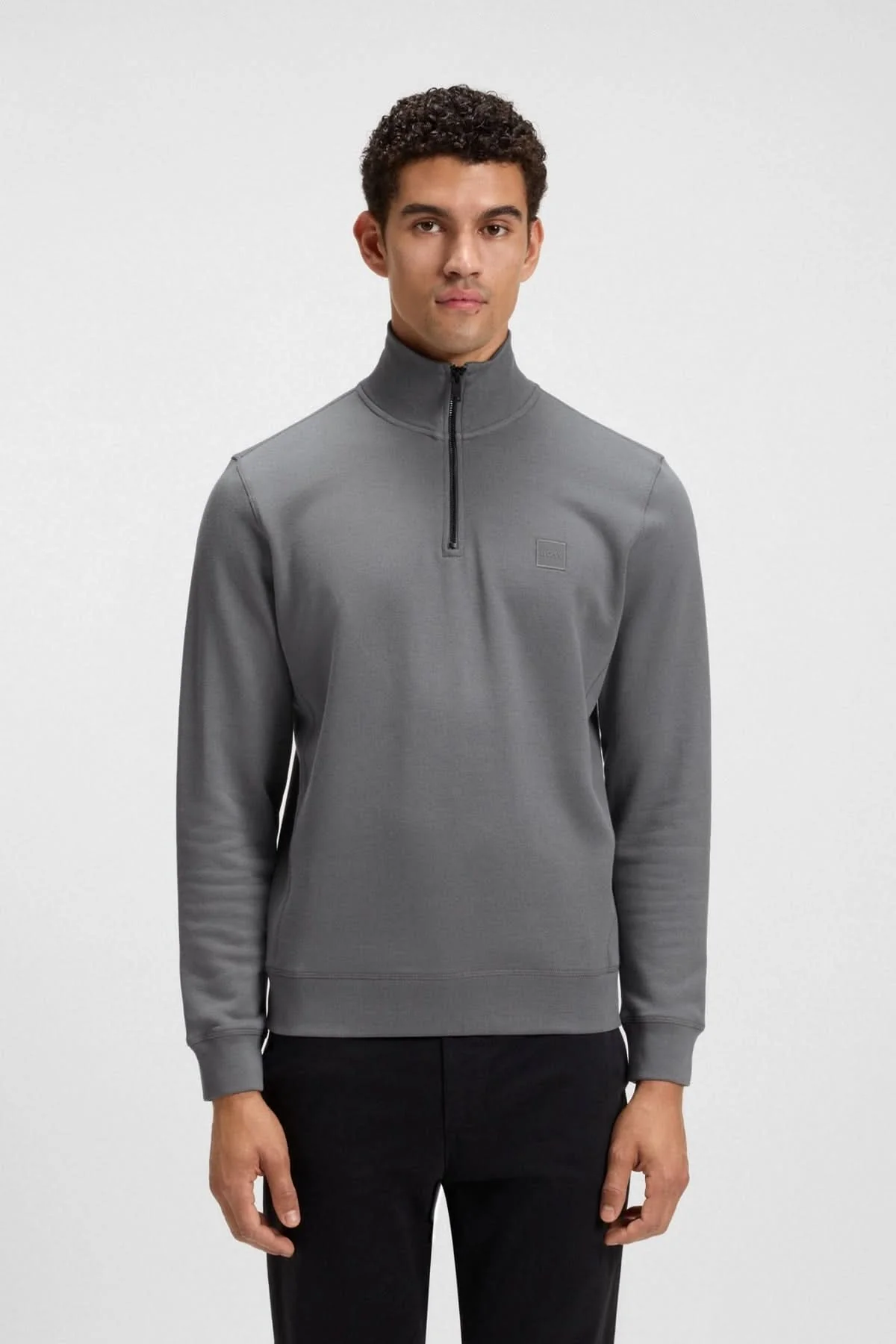 Description: Ce chandail BOSS conjugue confort et style avec sa confection en coton éponge doux. Son col montant à demi-glissière ajoute une touche moderne et pratique, idéale pour superposer vos tenues. Parfait pour un look décontracté mais raffiné au quotidien.