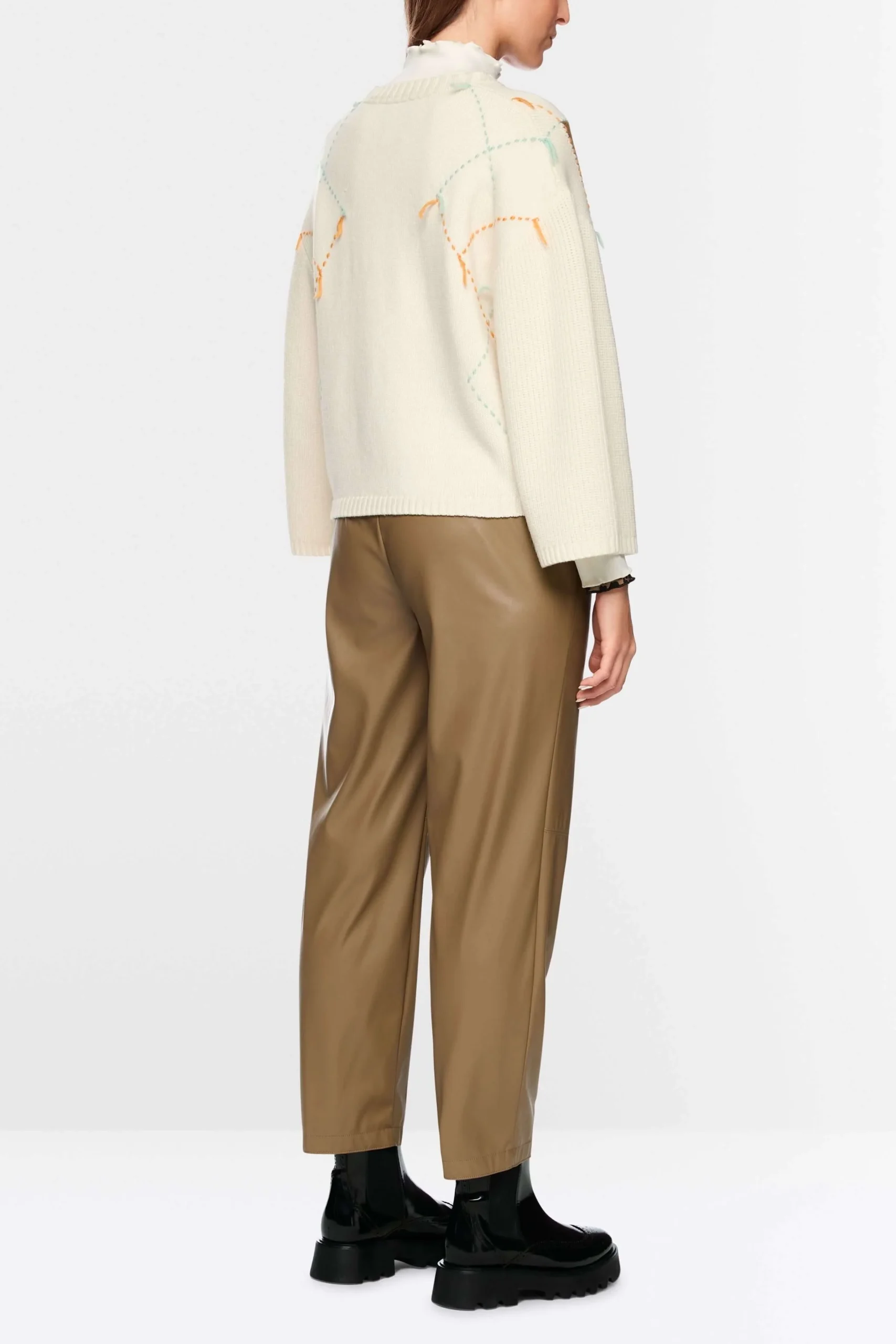 Description : Ce chandail à motif losanges revisité séduit par son mélange unique de mailles texturées et de détails léopard. Sa coupe ample et son col rond dégagent une allure moderne et confortable, parfaite pour la saison froide. Facile à agencer avec un pantalon en cuir ou un jean, il apporte une touche de fantaisie tout en conservant une élégance décontractée.