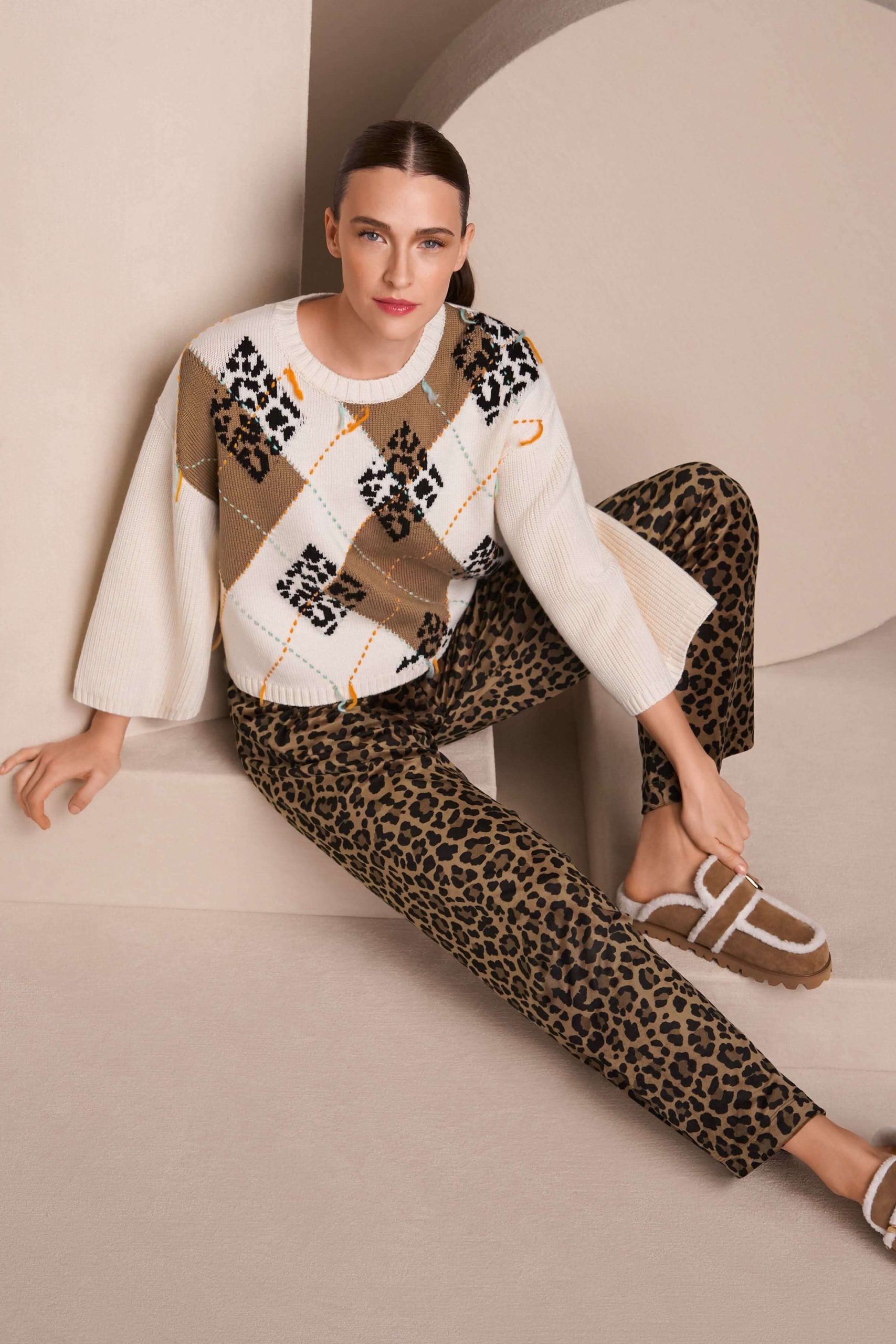 Chandail à motif losanges et accents léopard