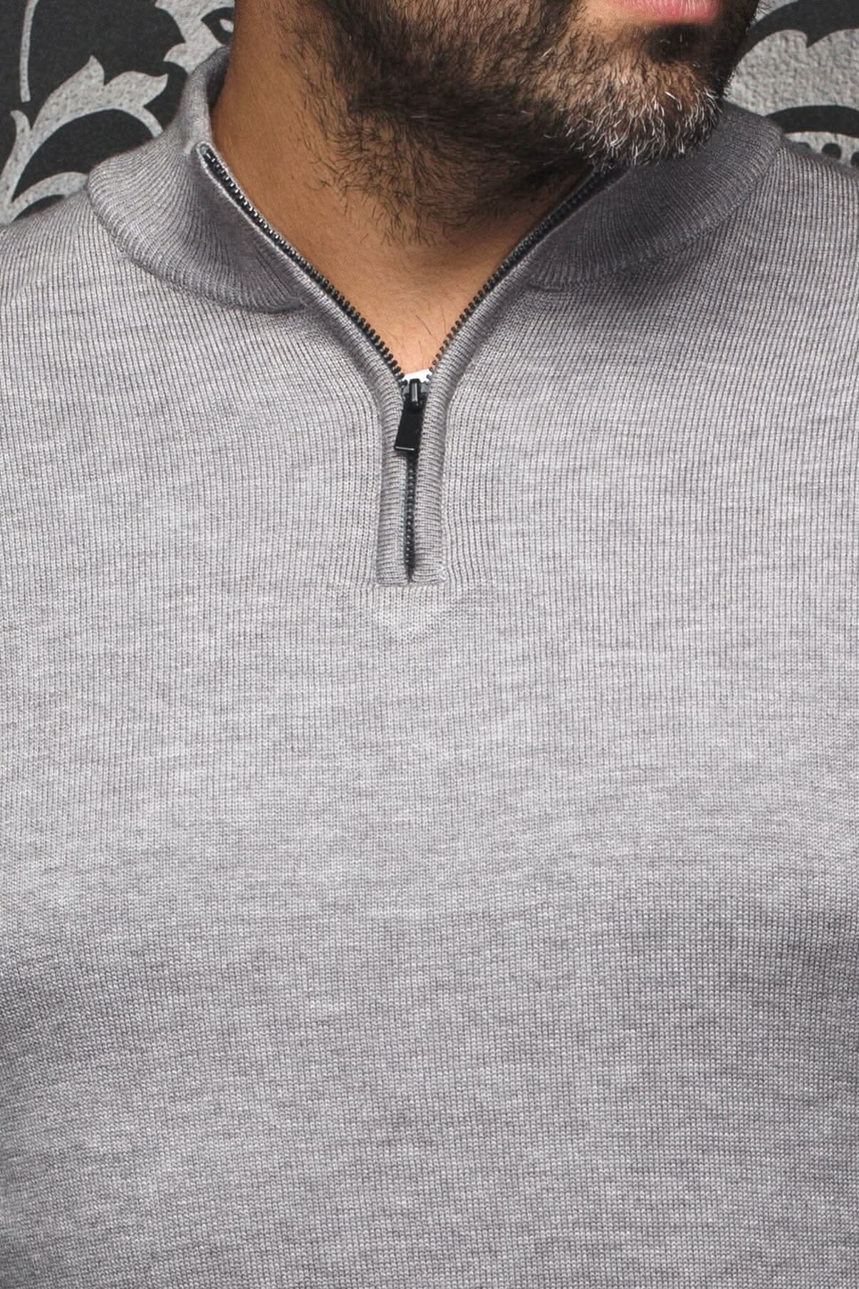 Chandail avec zip en mérinos Esteban gris pâle