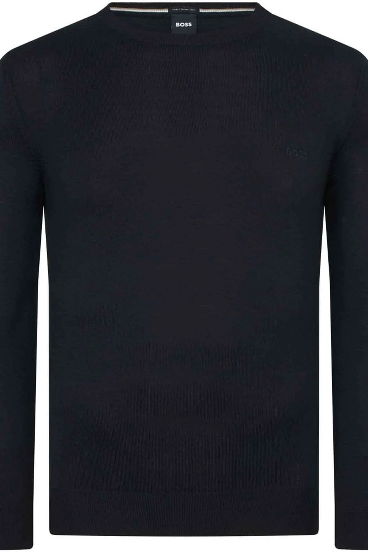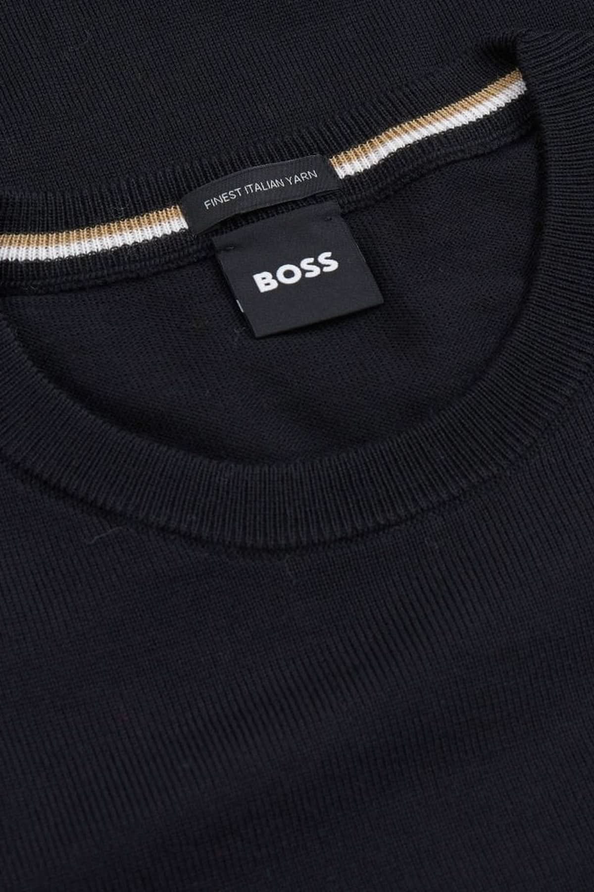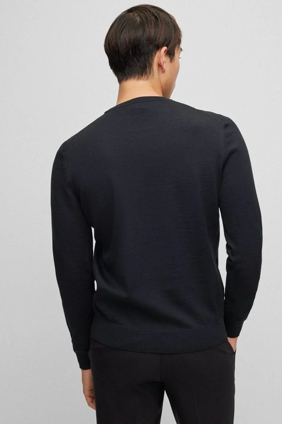 Description : Ce chandail BOSS allie simplicité et élégance grâce à sa confection en laine vierge douce et respirante. Sa coupe régulière et son col rond en tricot fin en font une pièce polyvalente, parfaite pour superposer sous un veston ou porter seule pour un style épuré. Un essentiel du vestiaire masculin moderne, confortable et intemporel.