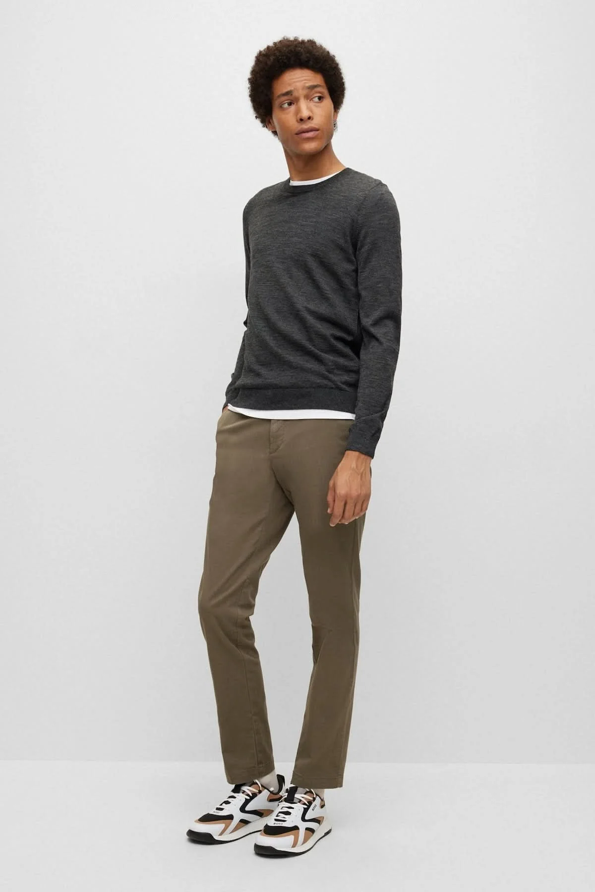 Description : Ce chandail BOSS allie élégance et confort grâce à sa confection en laine vierge mérinos douce et respirante. Sa coupe ajustée et son col rond lui confèrent une allure intemporelle, parfaite autant pour le bureau que pour les moments de détente. À porter seul ou sous une veste pour un style raffiné et polyvalent.