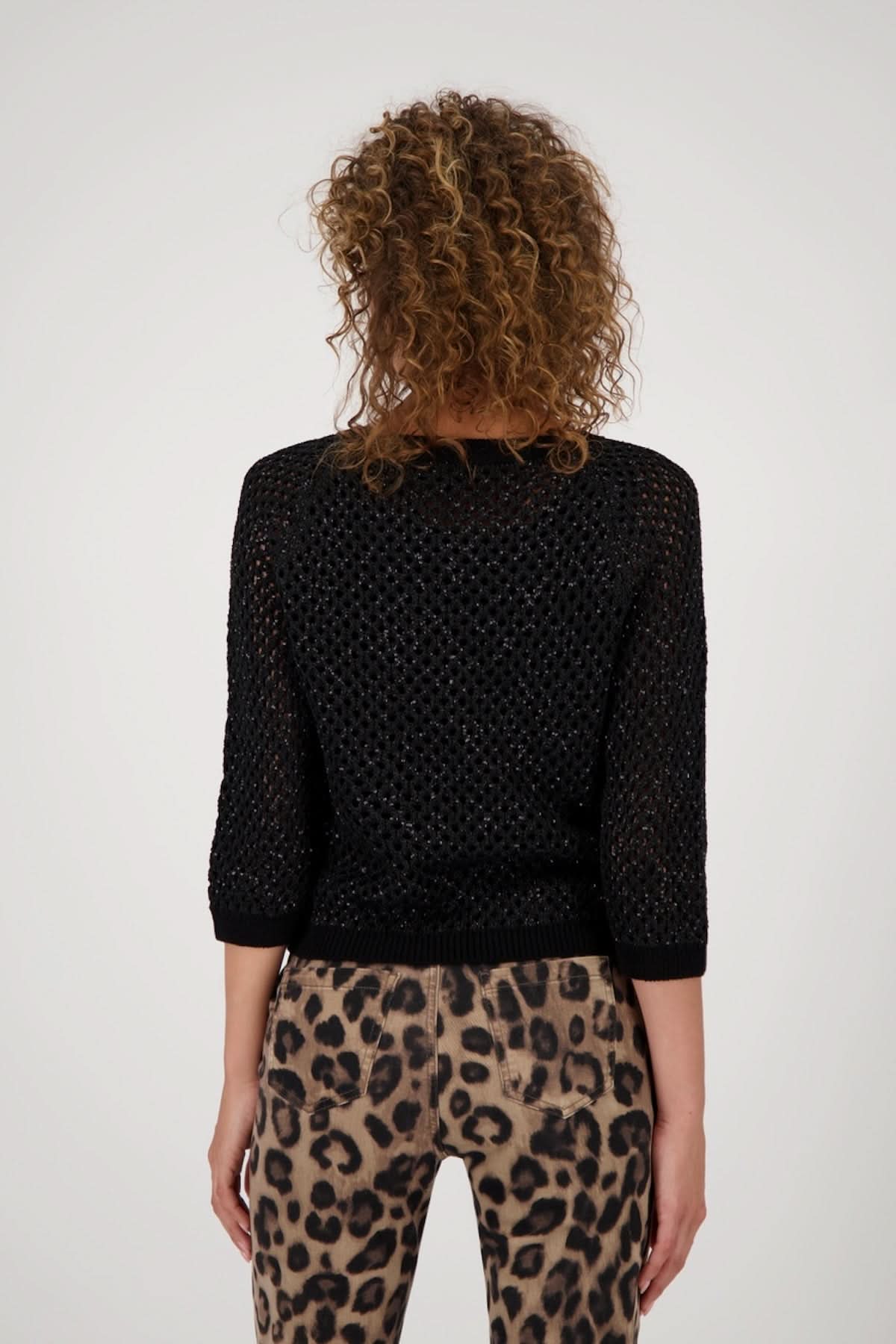 Description: Ce chandail en maille ajourée combine style et légèreté, parfait pour la mi-saison. Sa coupe droite et ses manches 3/4 apportent une touche moderne, tandis que sa texture ajourée laisse entrevoir subtilement la tenue portée dessous. Conseil style : associez-le à un pantalon imprimé pour un look audacieux et tendance.