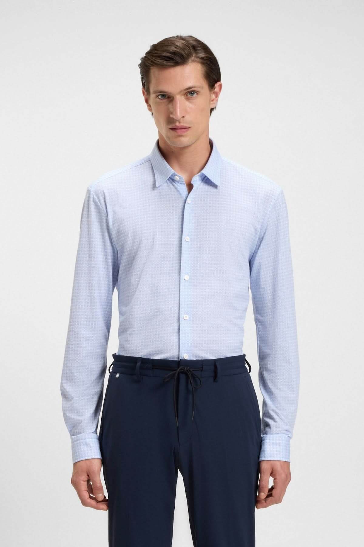 Description : Confectionnée dans un tissu flex-weave alliant coton et élasthanne, cette chemise BOSS présente un motif moderne et une coupe ajustée qui épouse la silhouette tout en offrant une liberté de mouvement optimale. Idéale pour un look raffiné au bureau ou sous un veston, elle allie confort, style et légèreté.