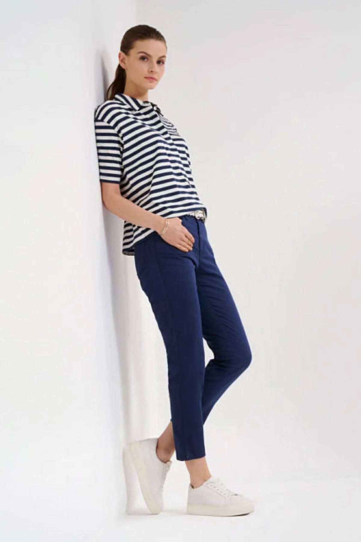Description : Un classique complété avec des baskets ou des sandales, le pantalon 6/8 cinq poches est parfait pour créer des combinaisons stylées. Le pantalon coupe classique assure un confort optimal avec une coupe droite. Ils sont également travaillés avec des surpiqûres décoratives, vous pouvez profiter d’une légèreté exceptionnelle. La combinaison du tissu et du traitement a créé une qualité ultra légère, douce et durable. Satiné pour une brillance luxueuse et un toucher doux. Avec ce pantalon à cinq poches, le mélange de coton facile d’entretien et doux pour la peau offre également un toucher de première classe.