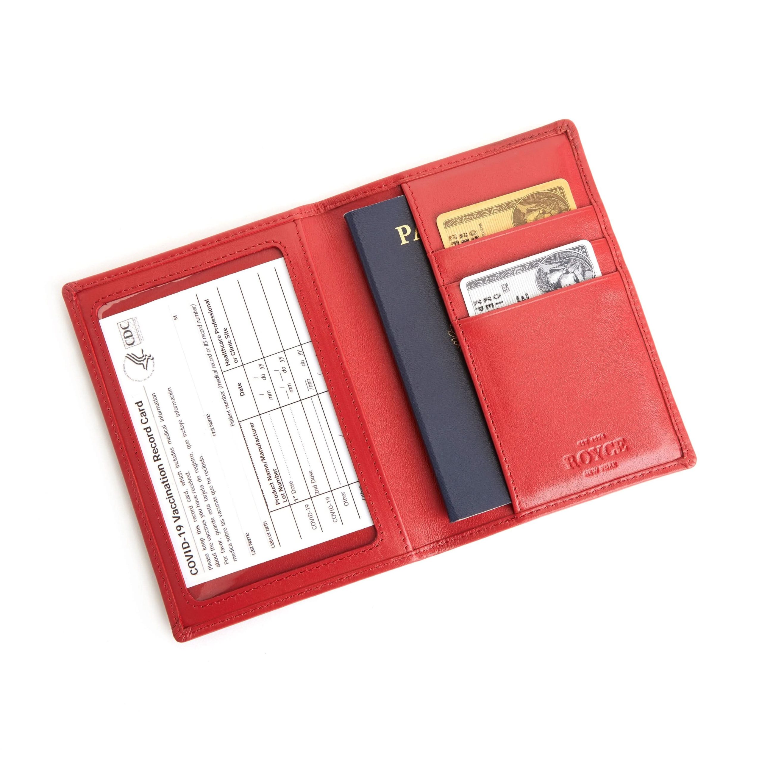 Voyagez avec style et en toute sécurité grâce à ce coffret cadeau de voyage comprenant un porte-passeport à blocage RFID avec une pochette en plastique pour une carte de vaccin et une étiquette à bagages assortie en cuir américain fabriqué à la main. L’étui à passeport comporte 4 fentes pour cartes de crédit ainsi qu’une pochette pour ranger un passeport en toute sécurité.