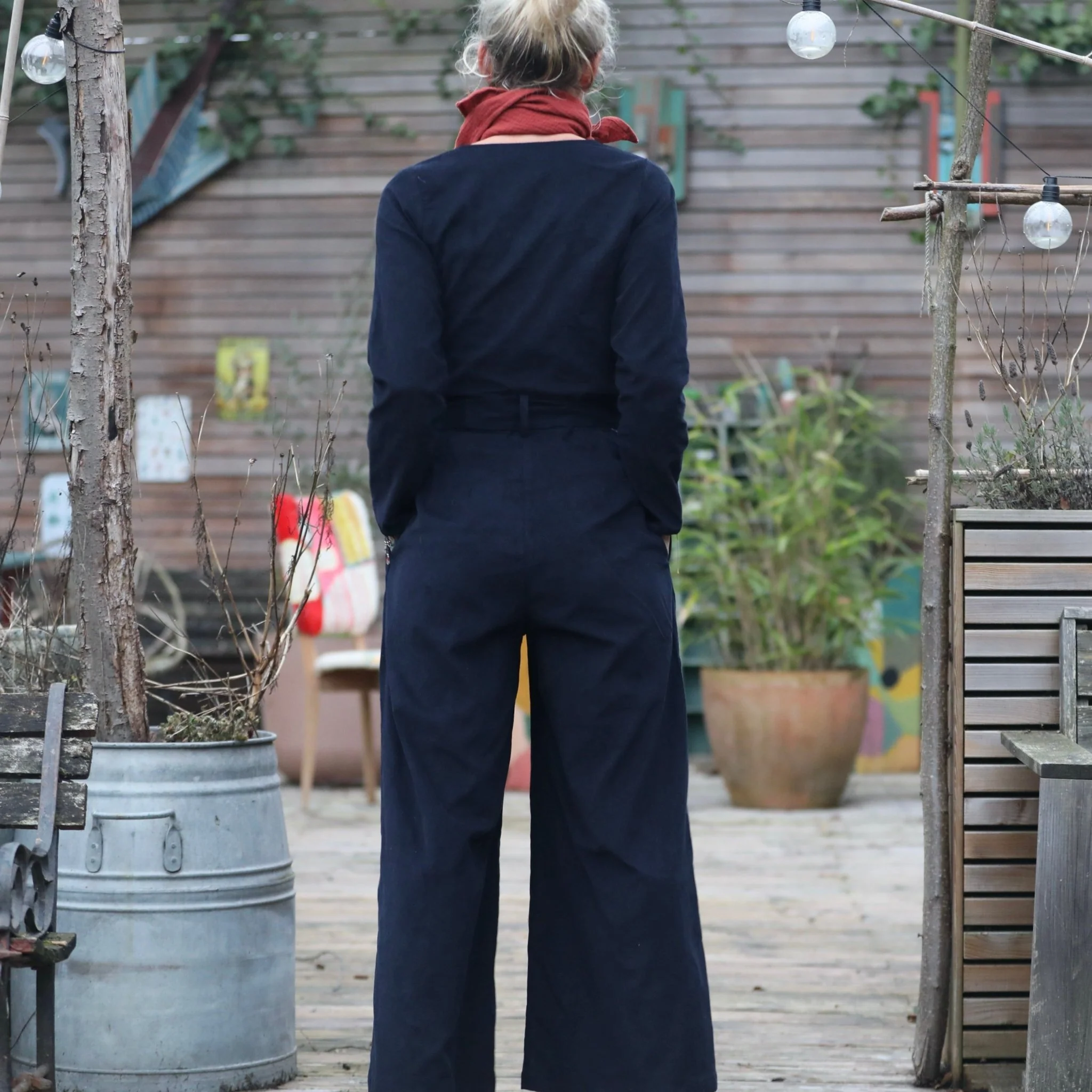 Perla est une combinaison ample, élégante et confortable. Elle est dotée de boutons-pression, de deux poches discrètes sur les côtés, d’une ceinture intégrée à la taille, ainsi que d’une ceinture amovible à passer dans des passants prévus à cet effet. Ses jambes larges et sa fourche bien ajustée en font une pièce adaptée à toutes […]