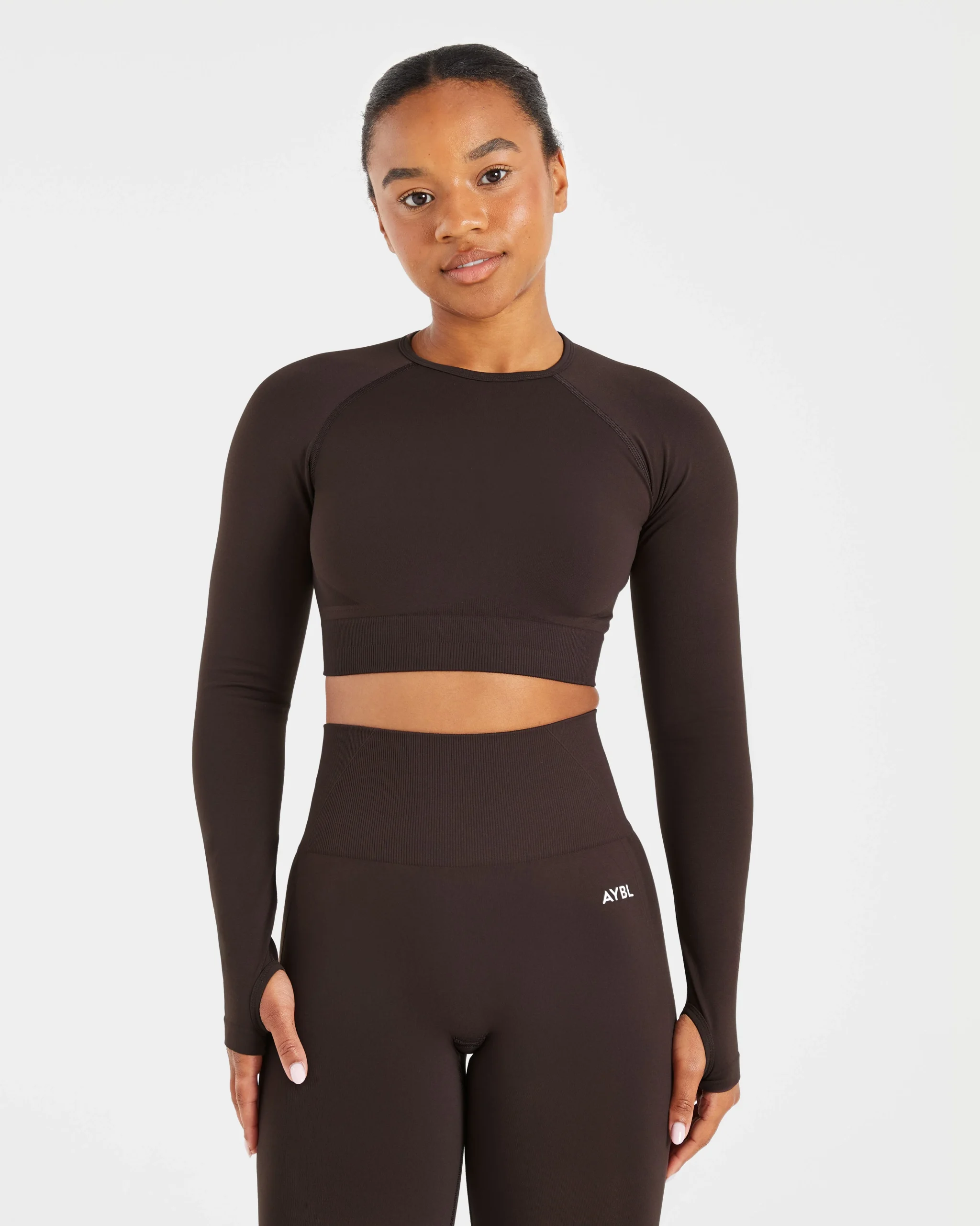 Empower Seamless Long Sleeve Crop Top – Cocoa Marron