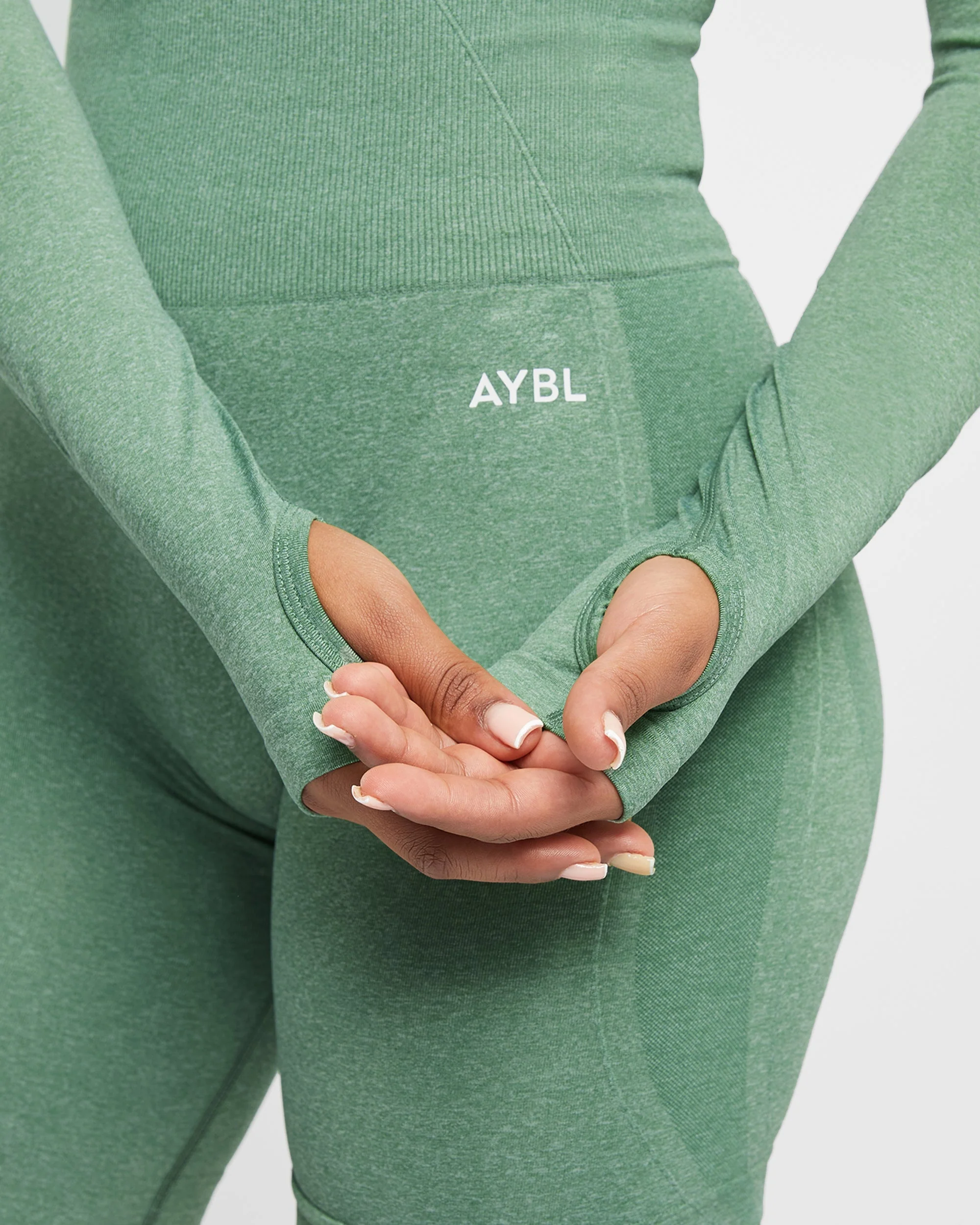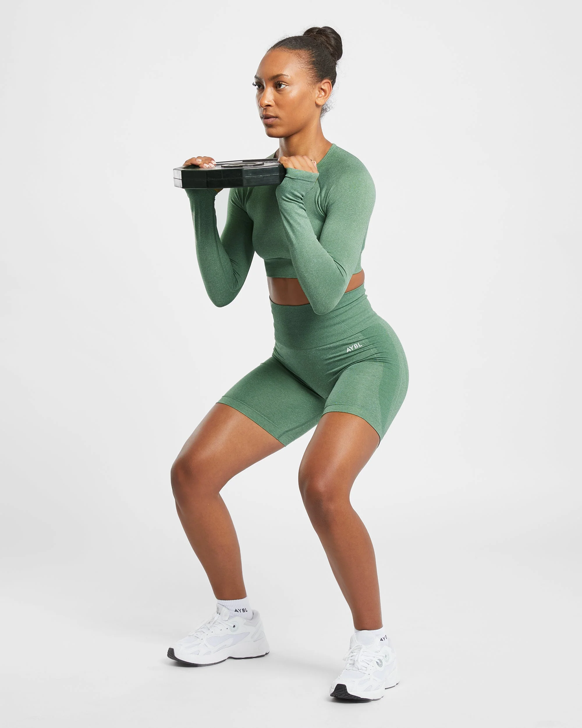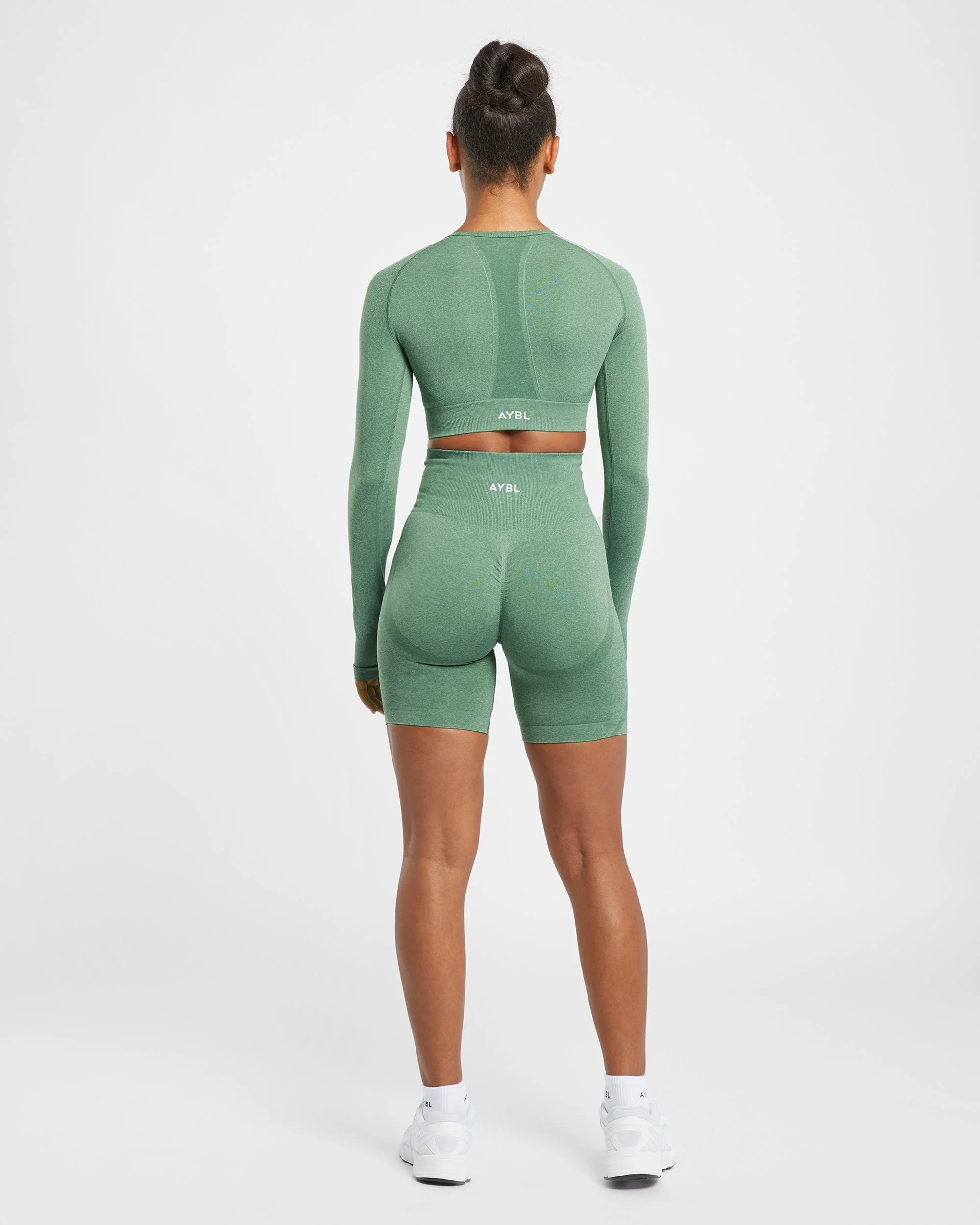 Empower Seamless Long Sleeve Crop Top – Olive Marl