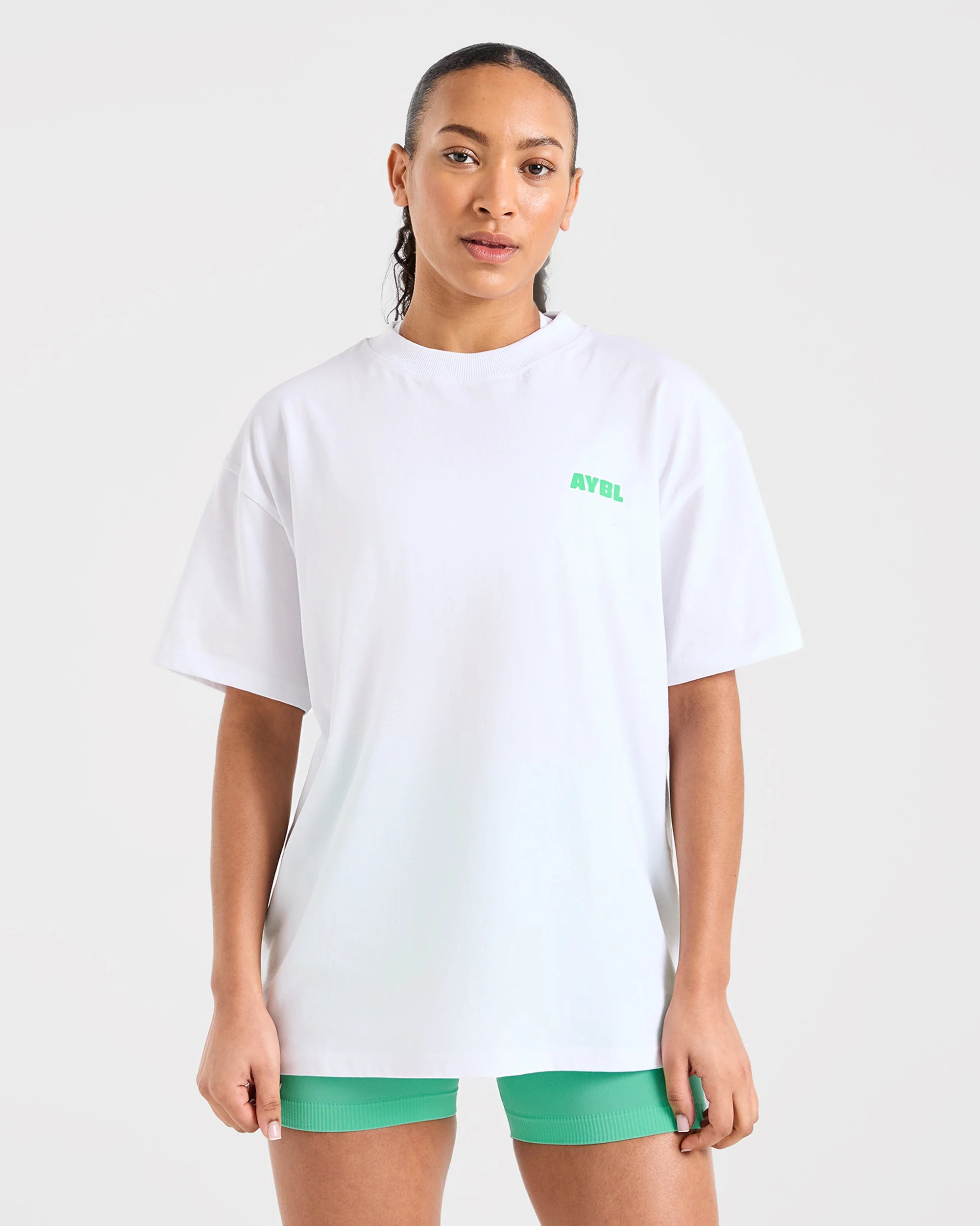 Focused Wavy Oversized T Shirt – Blanc/Vert