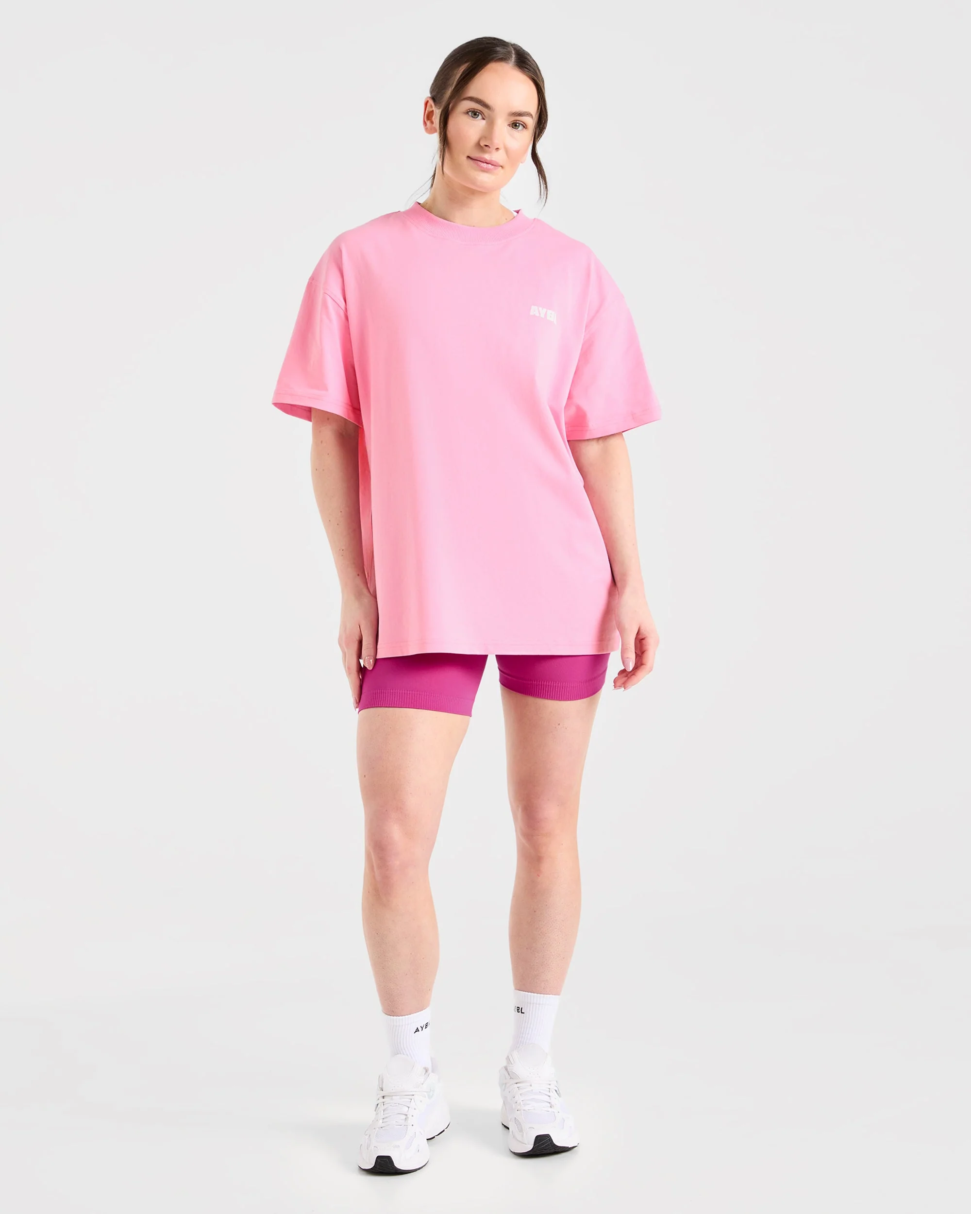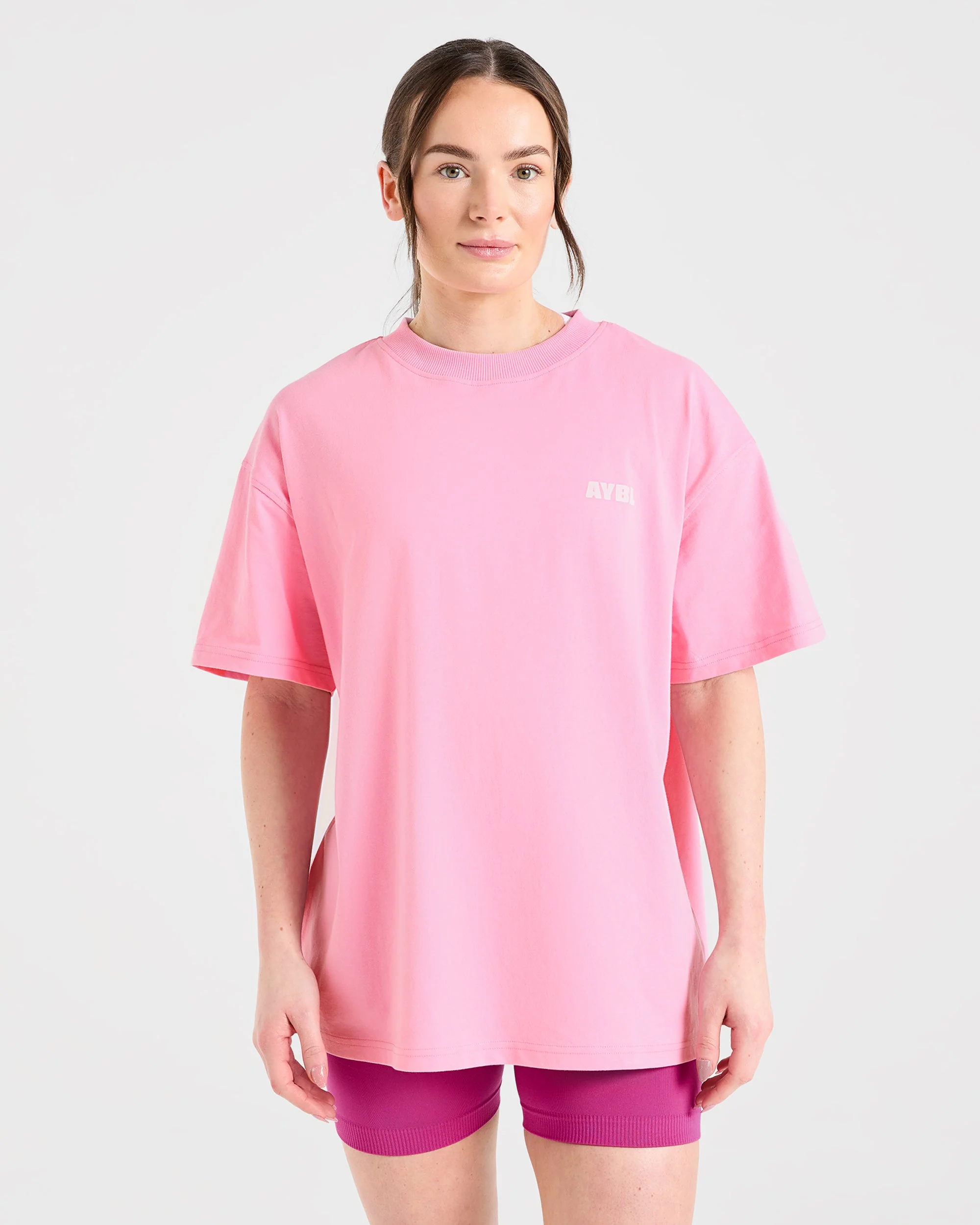 Focused Wavy Oversized T Shirt – Rose/Blanc