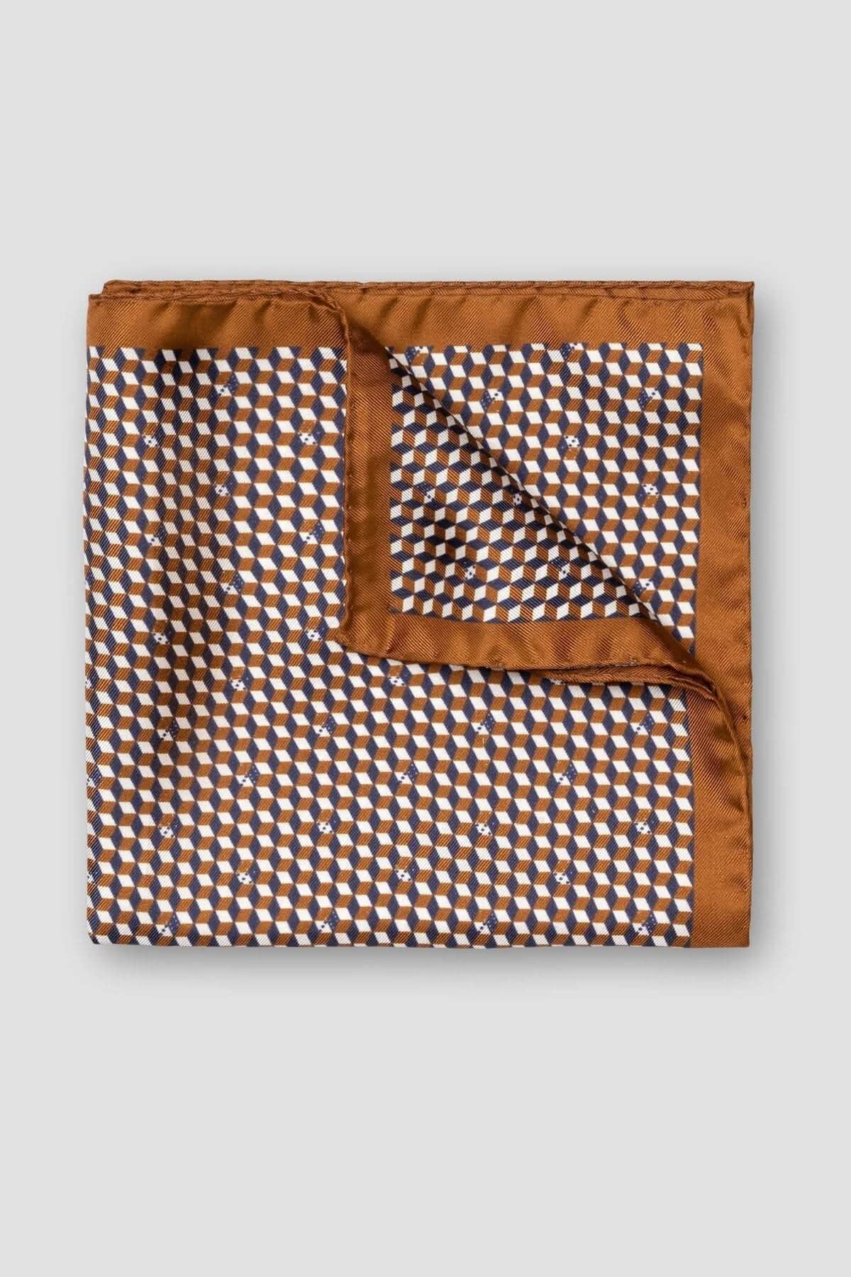 Ce foulard de poche présente un motif géométrique élégant en brun et marine, enrichi de nuances d’ivoire pour un look sophistiqué. Son motif cube ajoute une dimension moderne, tandis que les couleurs classiques assurent une polyvalence avec n’importe quel costume. Un accessoire indispensable pour l’homme moderne qui souhaite ajouter une touche de style à sa tenue.