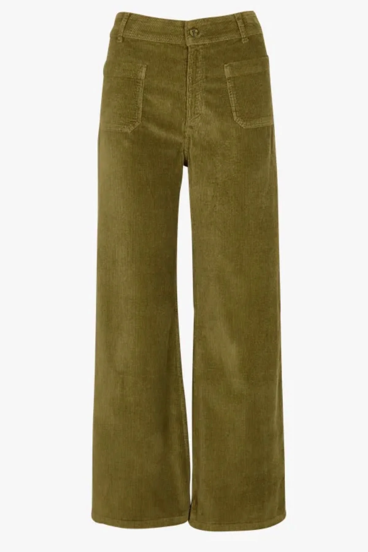 DESCRIPTION : Ce pantalon vert à jambes larges et taille haute est en velours côtelé, offrant une texture riche et élégante. Les poches à l’avant et à l’arrière ajoutent une touche pratique et stylée. Pour un look équilibré, associez-le à un haut ajusté et des chaussures à plateforme pour allonger la silhouette.