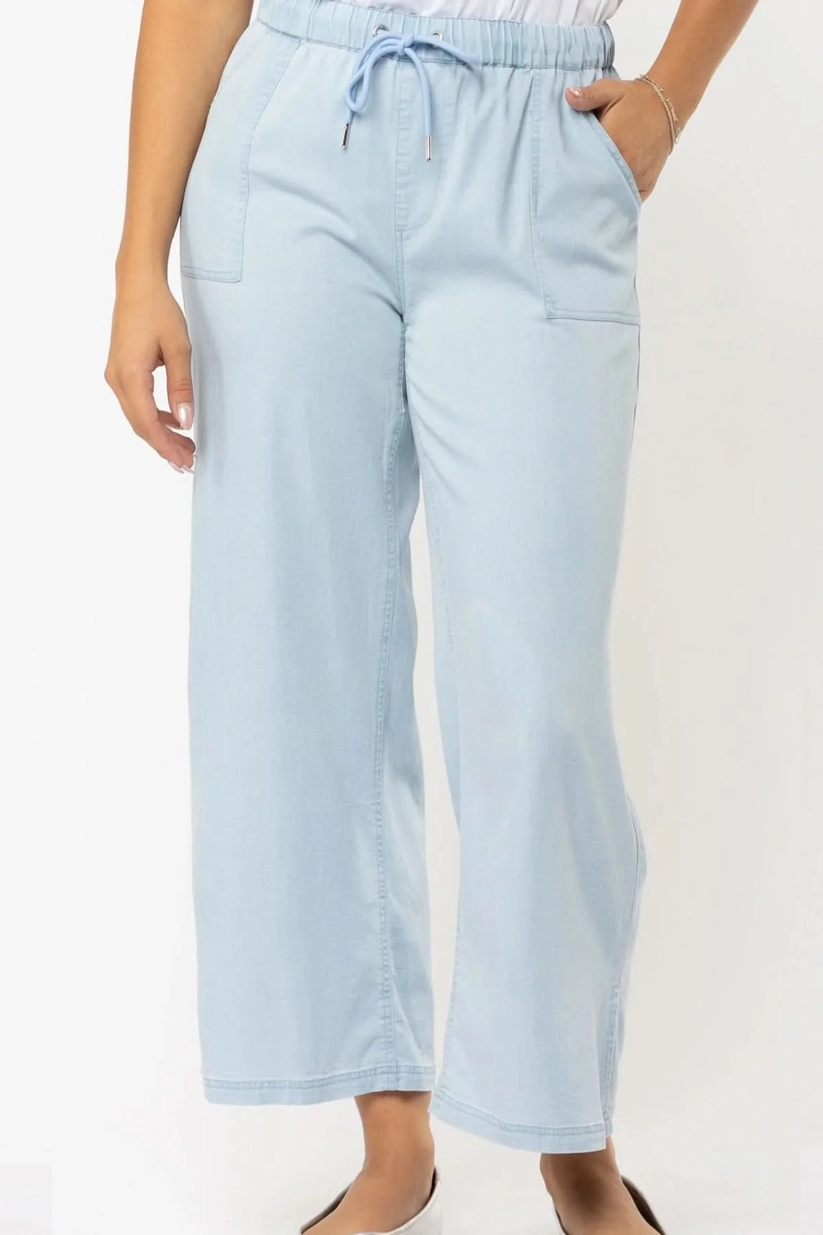 Description : Ce pantalon à jambe large offre un confort optimal grâce à sa taille élastique avec cordon ajustable. Confectionné dans un tissu léger et fluide, il épouse les mouvements tout en gardant une allure soignée. Idéal pour une tenue détente stylée, il s’agence parfaitement à un chandail léger ou une camisole rentrée.