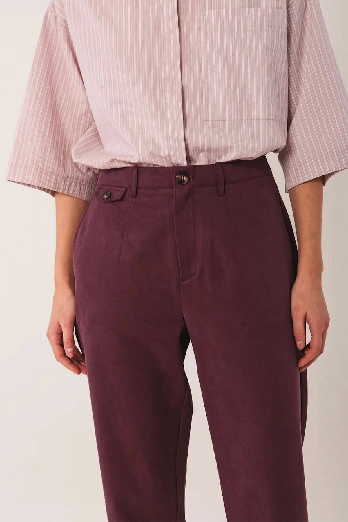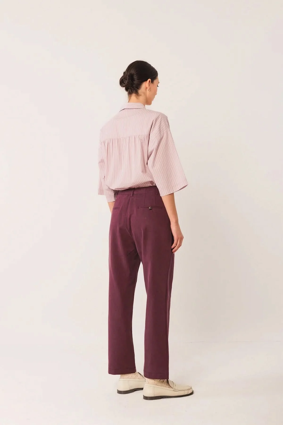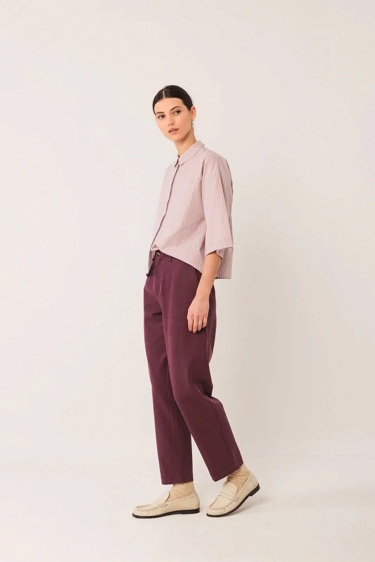 Description: Ce pantalon à la coupe droite combine confort et modernité grâce à sa taille mi-haute et son tombé fluide. Sa matière légèrement texturée lui confère un style élégant et polyvalent. Conseil style : portez-le avec une chemise oversize ou un chandail ajusté pour un contraste harmonieux.