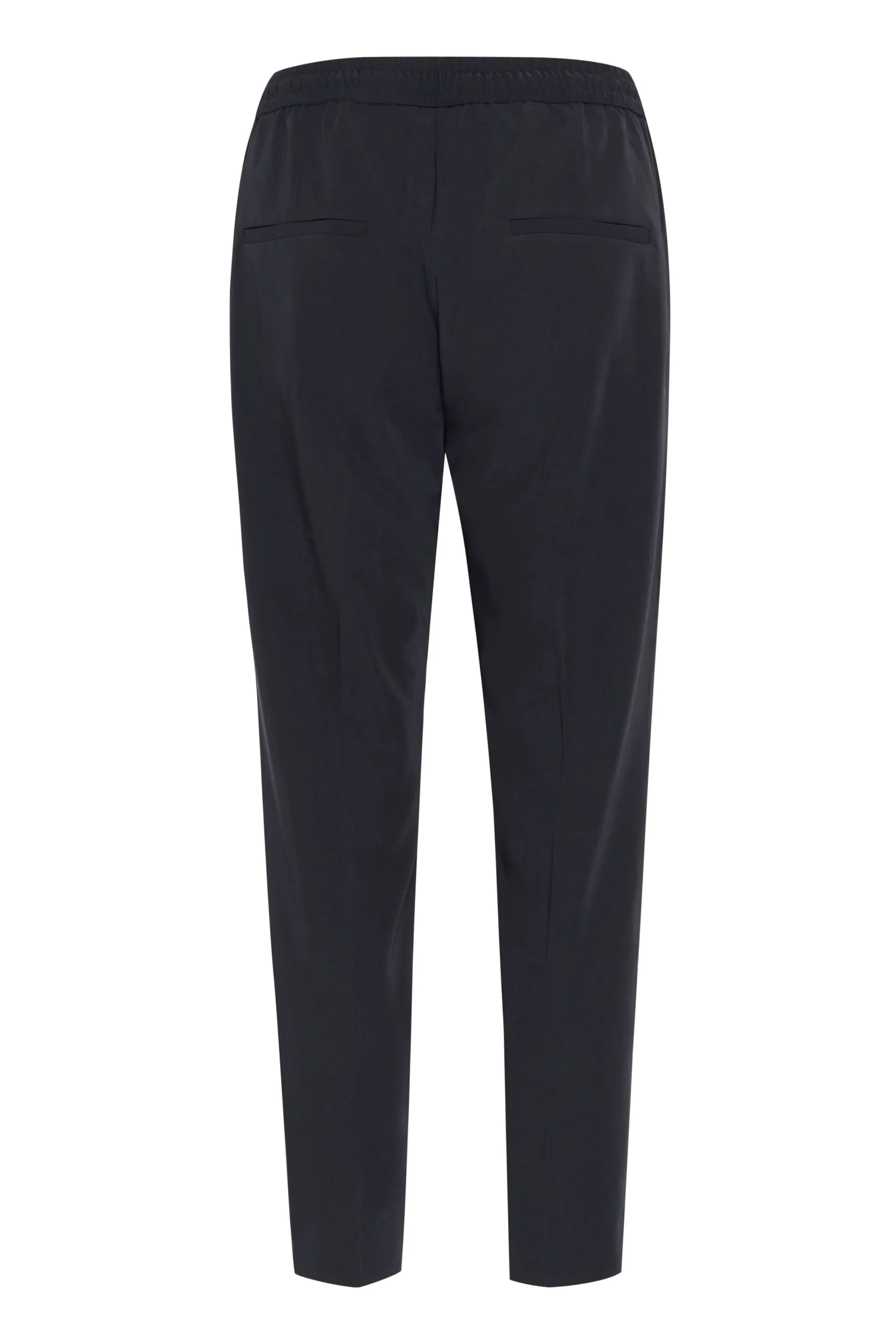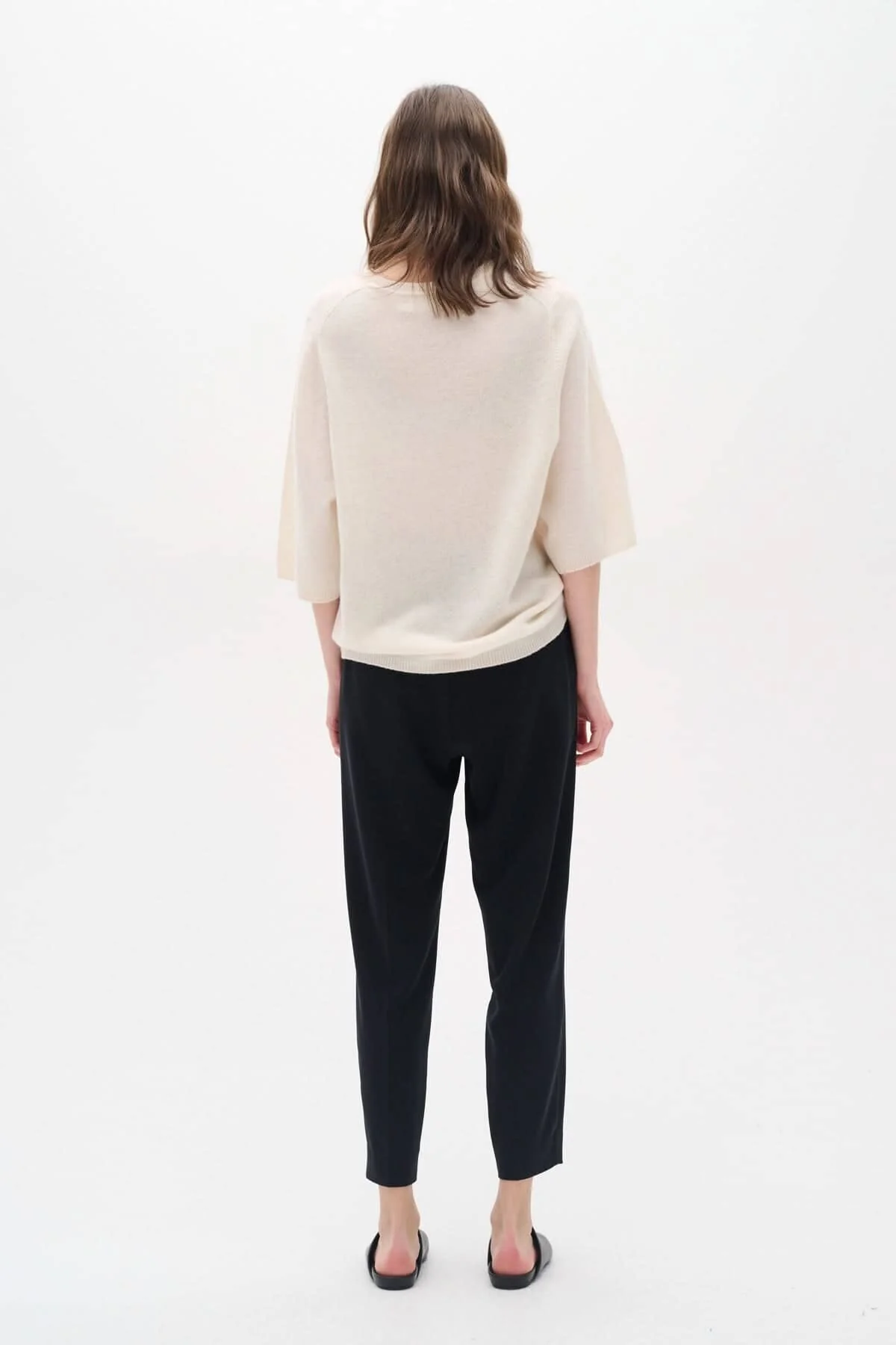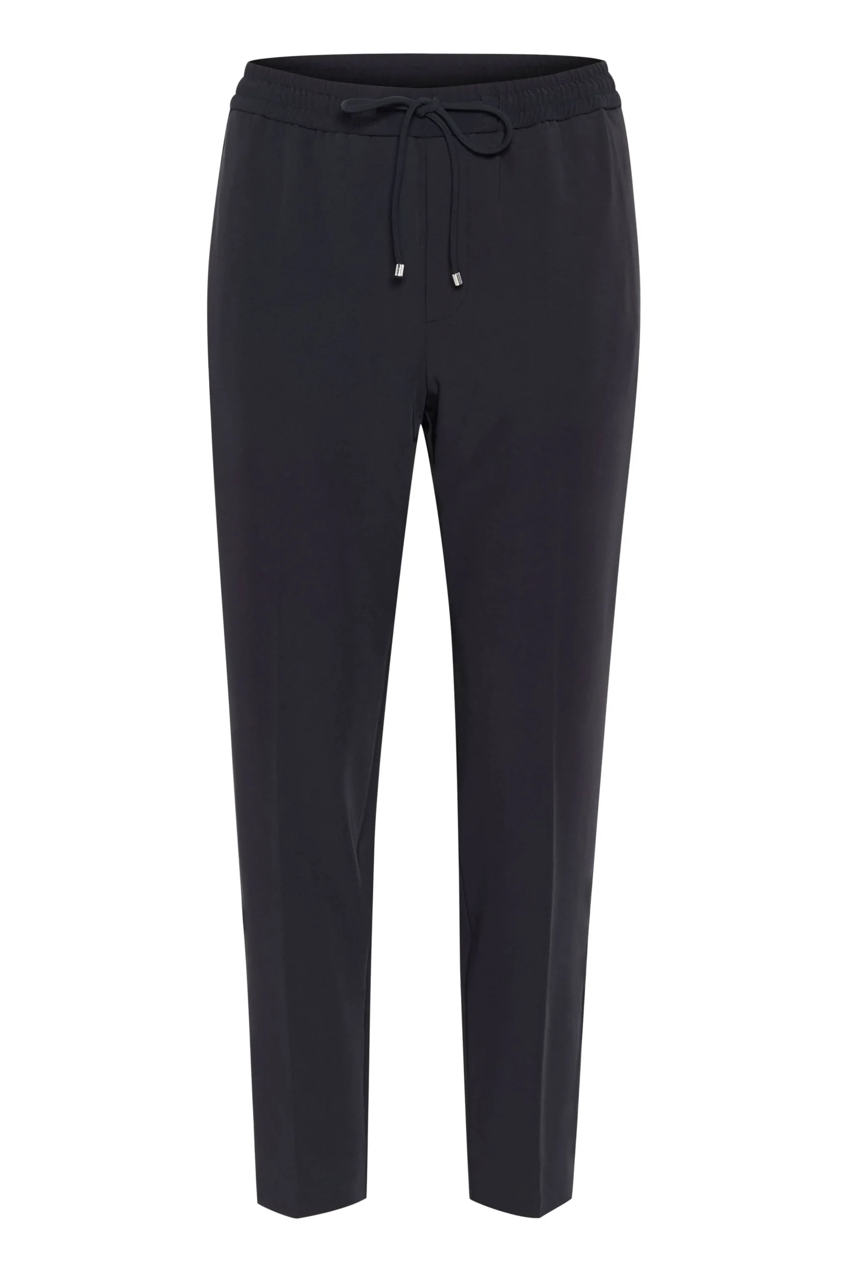 Description: Un pantalon inspiré du jogger athlétique pour un confort chic dans un tissu mince et confortable longueur cheville avec une taille élastique ajustable avec cordon coulissant, poches biais à l’avant et poches fente passepoilées cousues en trompe-l’oeil à l’arrière, coupe décontractée.