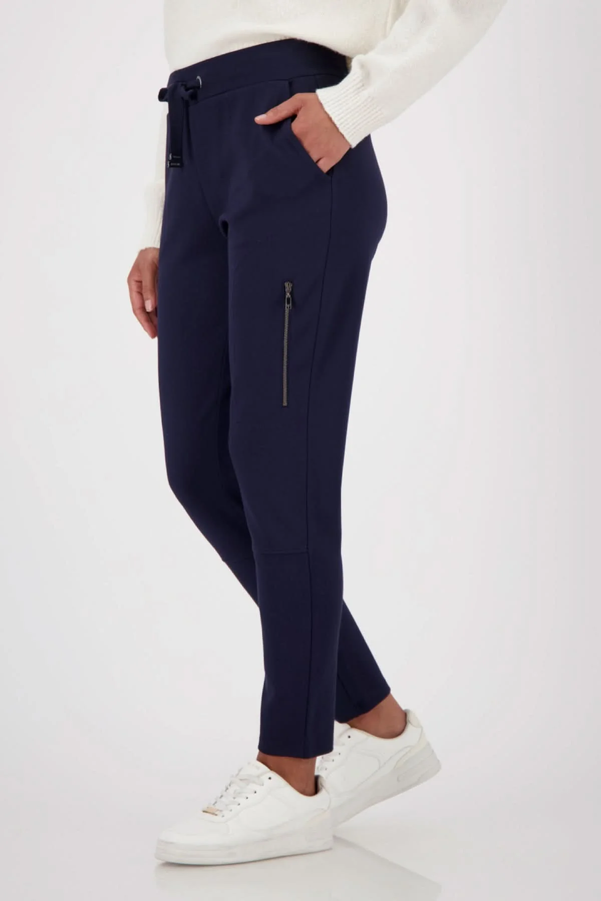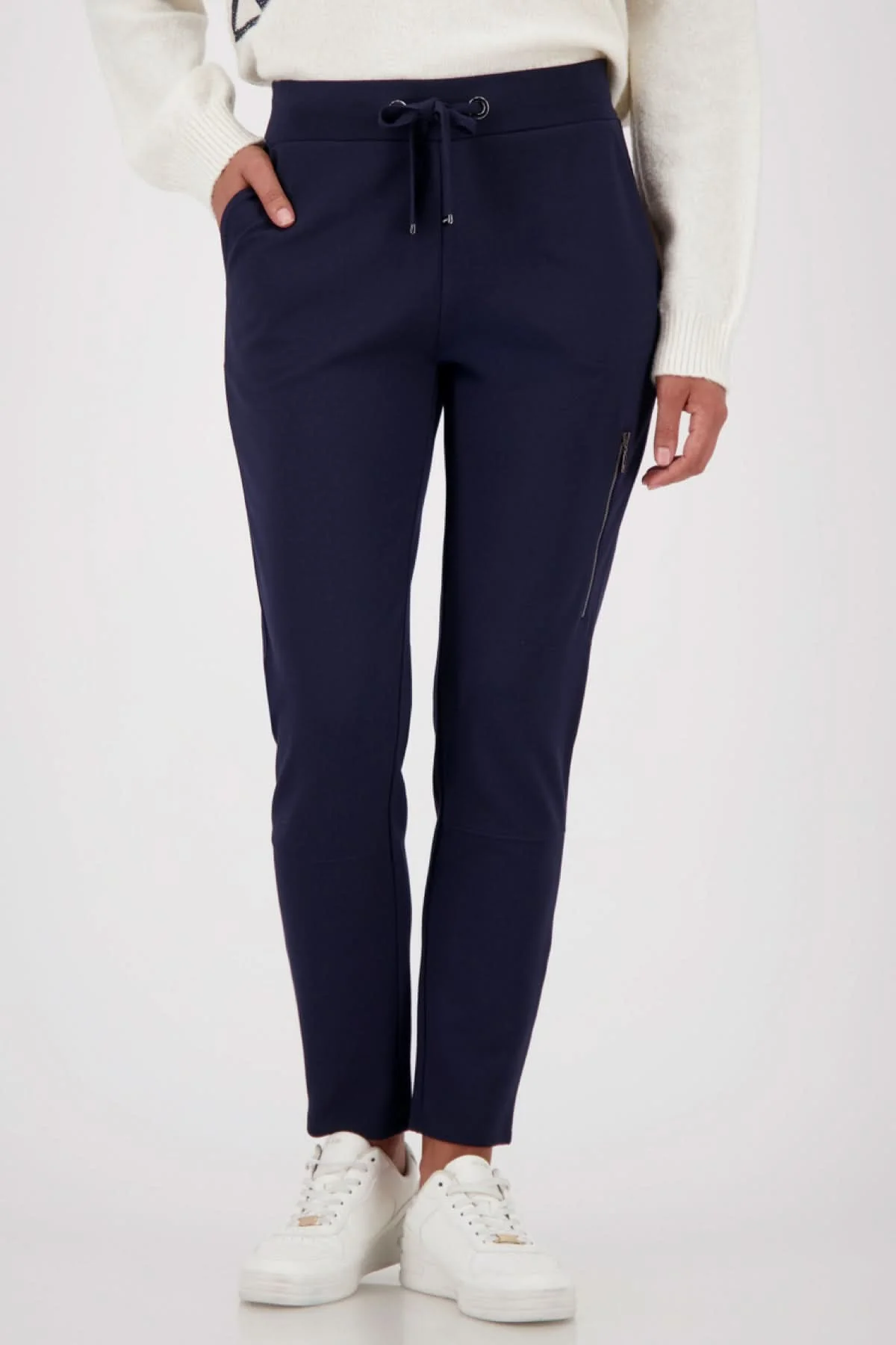 Description : Pantalon de jogging en viscose fluide avec matière extensible, texture côtelée, zip latéral et poches latérales plaquées pratiques pour plus de confort et de style.