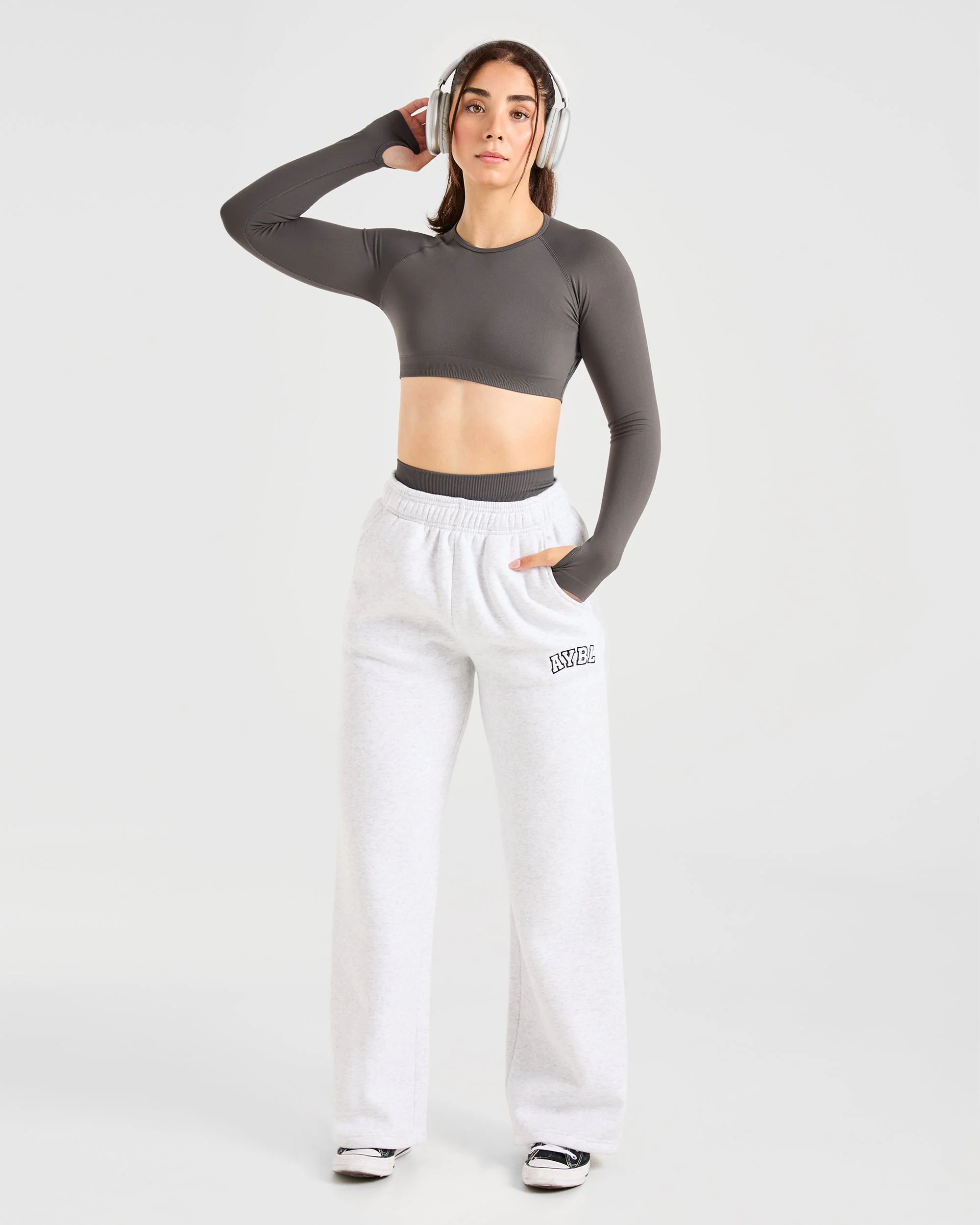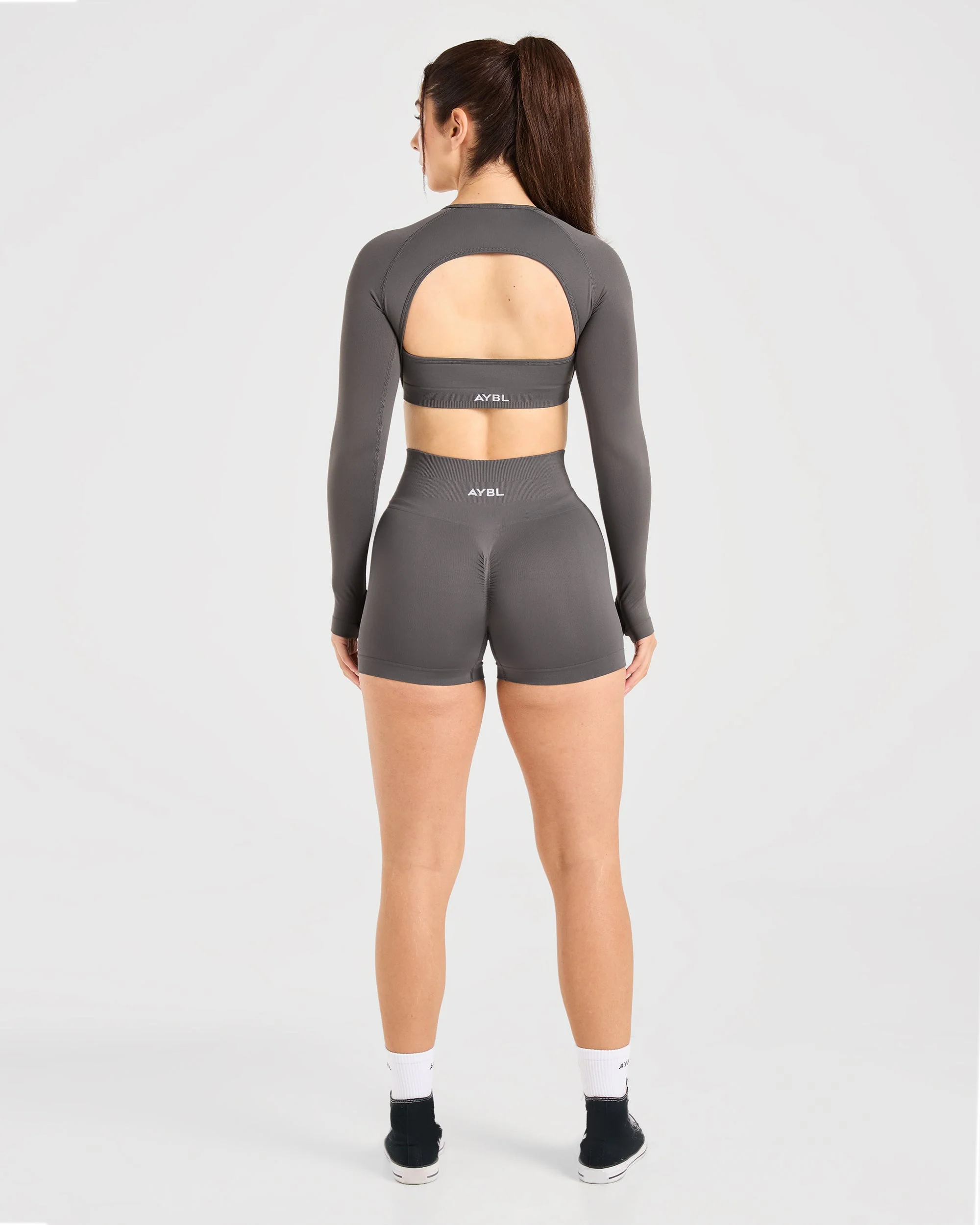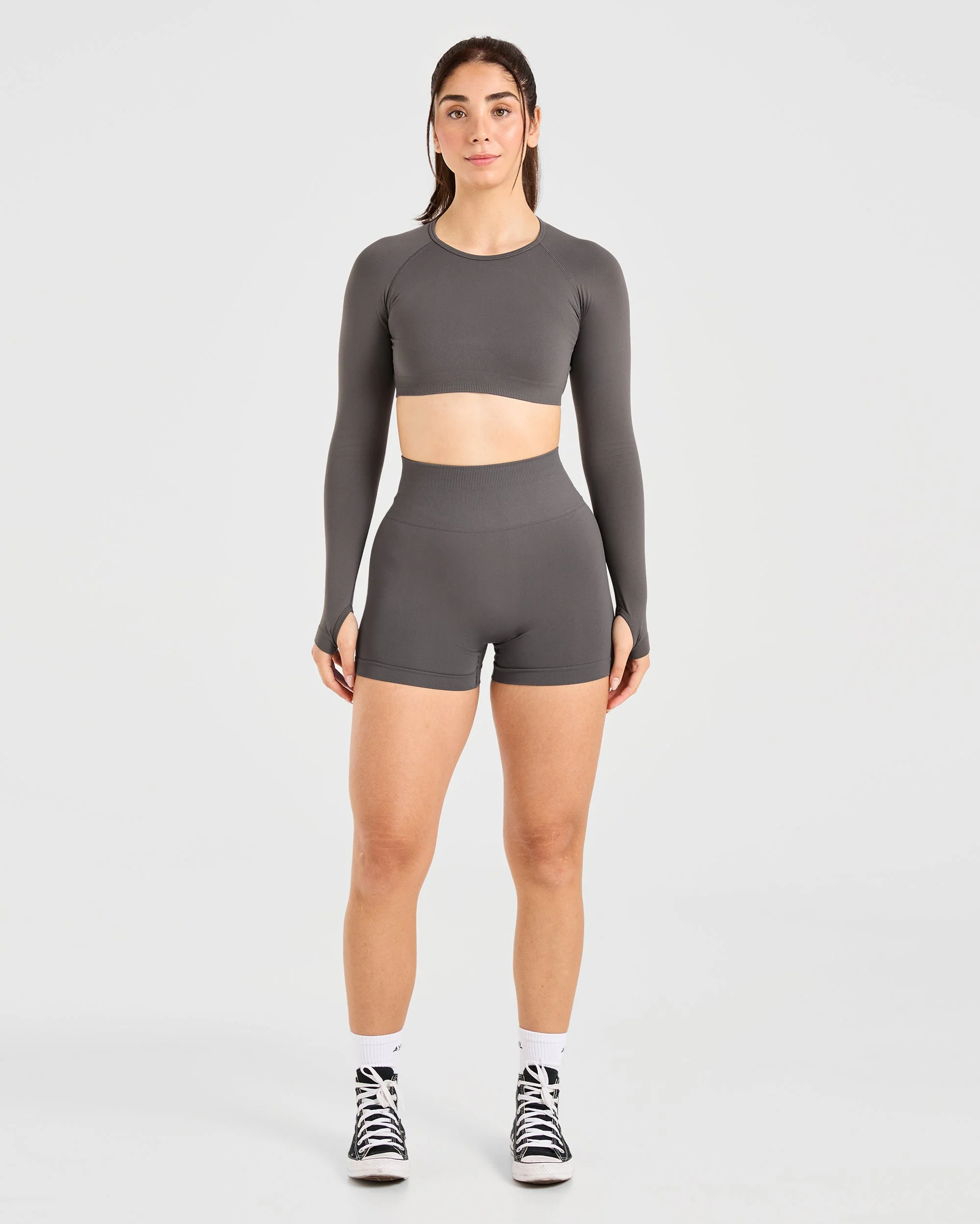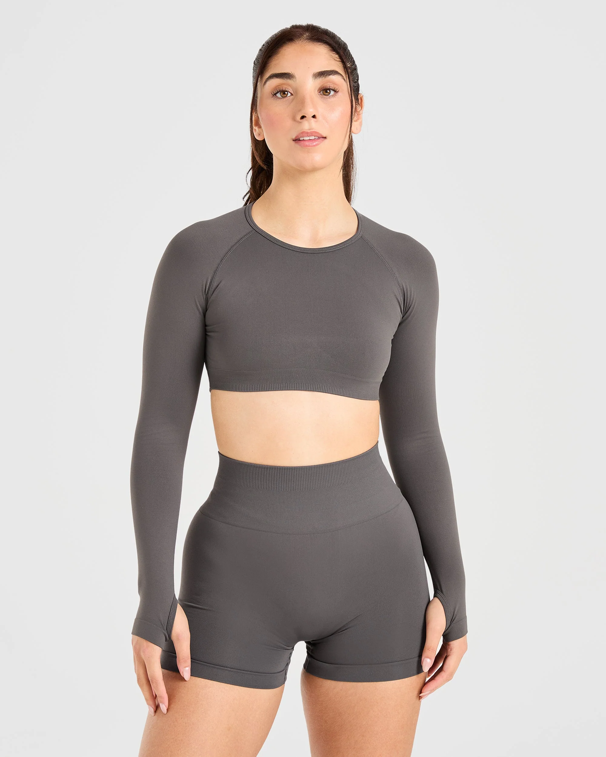 Power Seamless Long Sleeve Crop Top – Charcoal