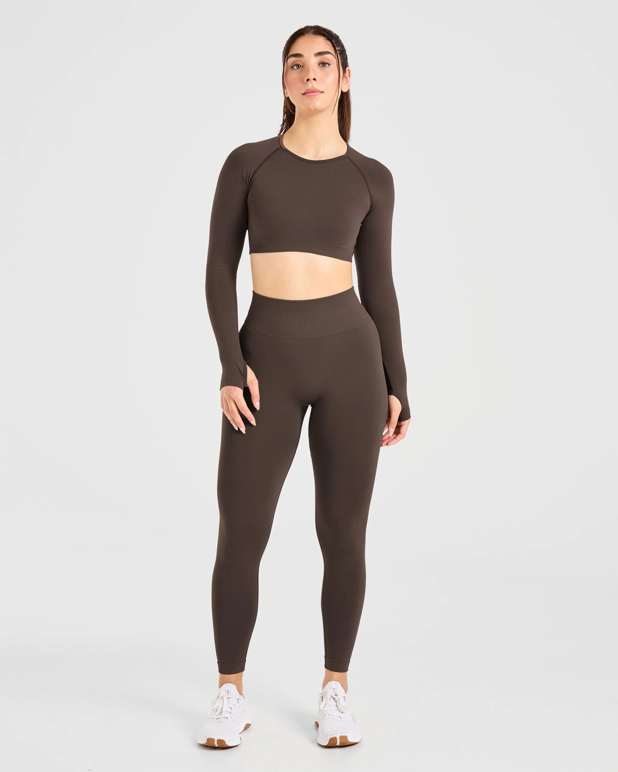 Empower Seamless Long Sleeve Crop Top – Cocoa Marron