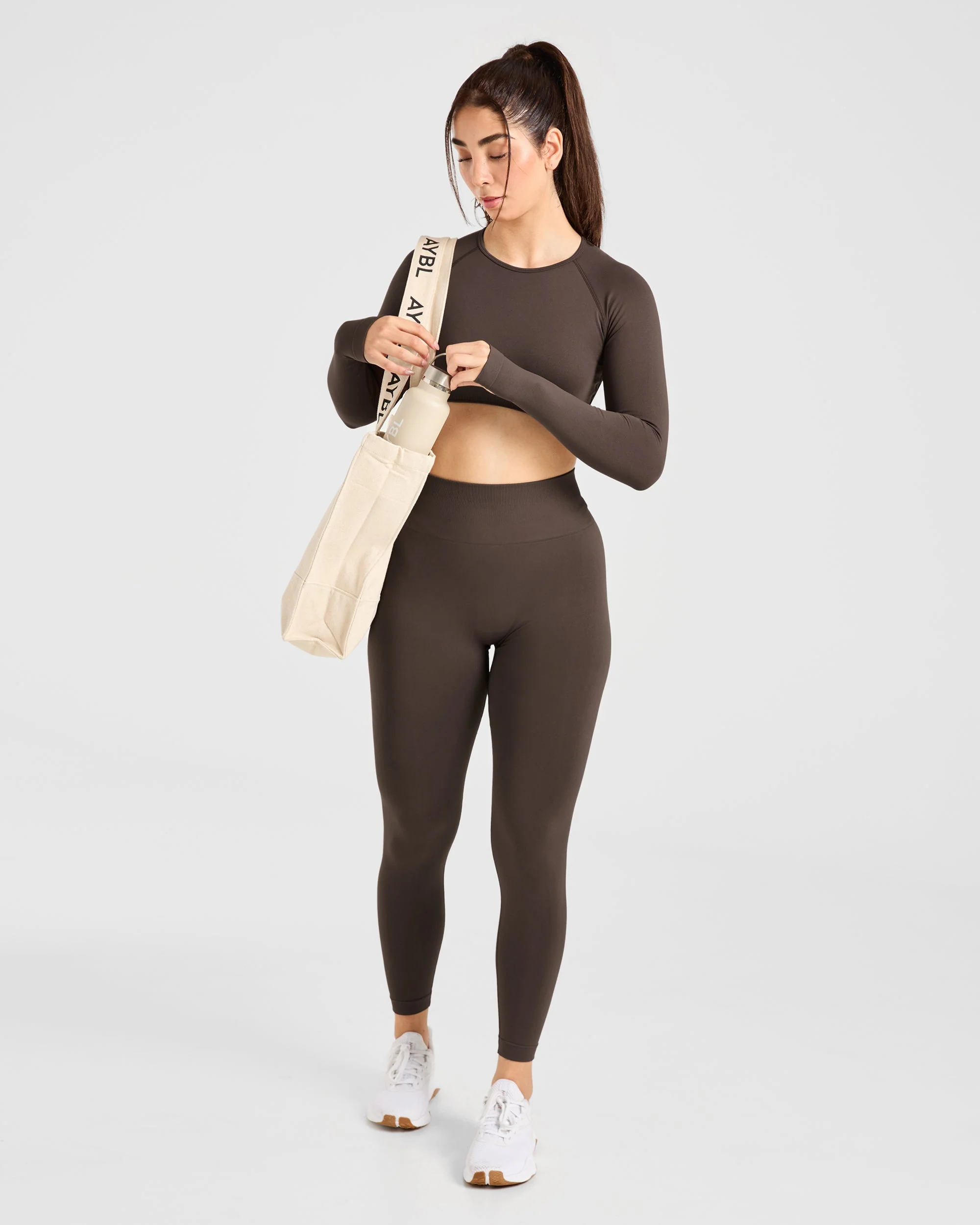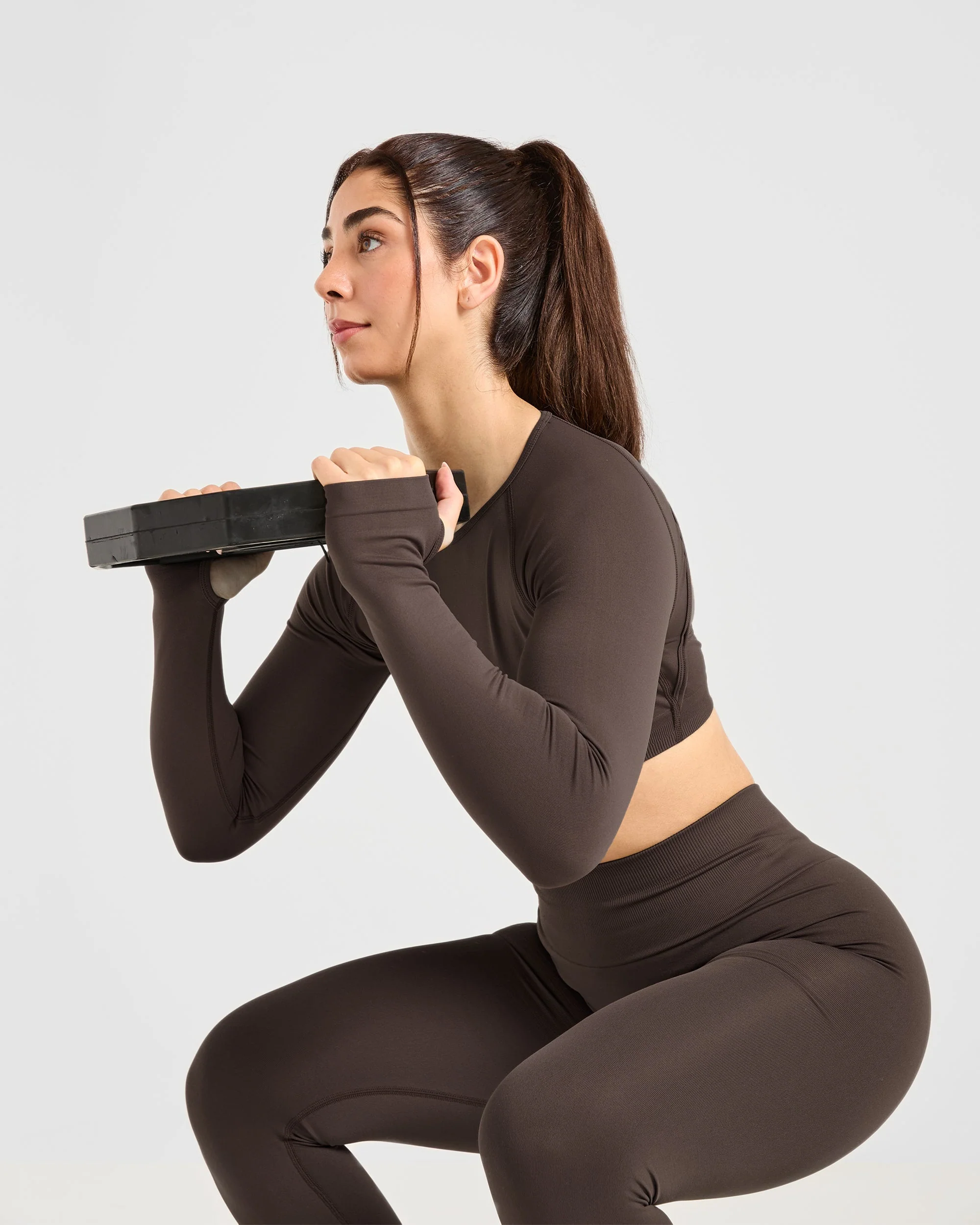 Power Seamless Long Sleeve Crop Top – Chestnut Brun