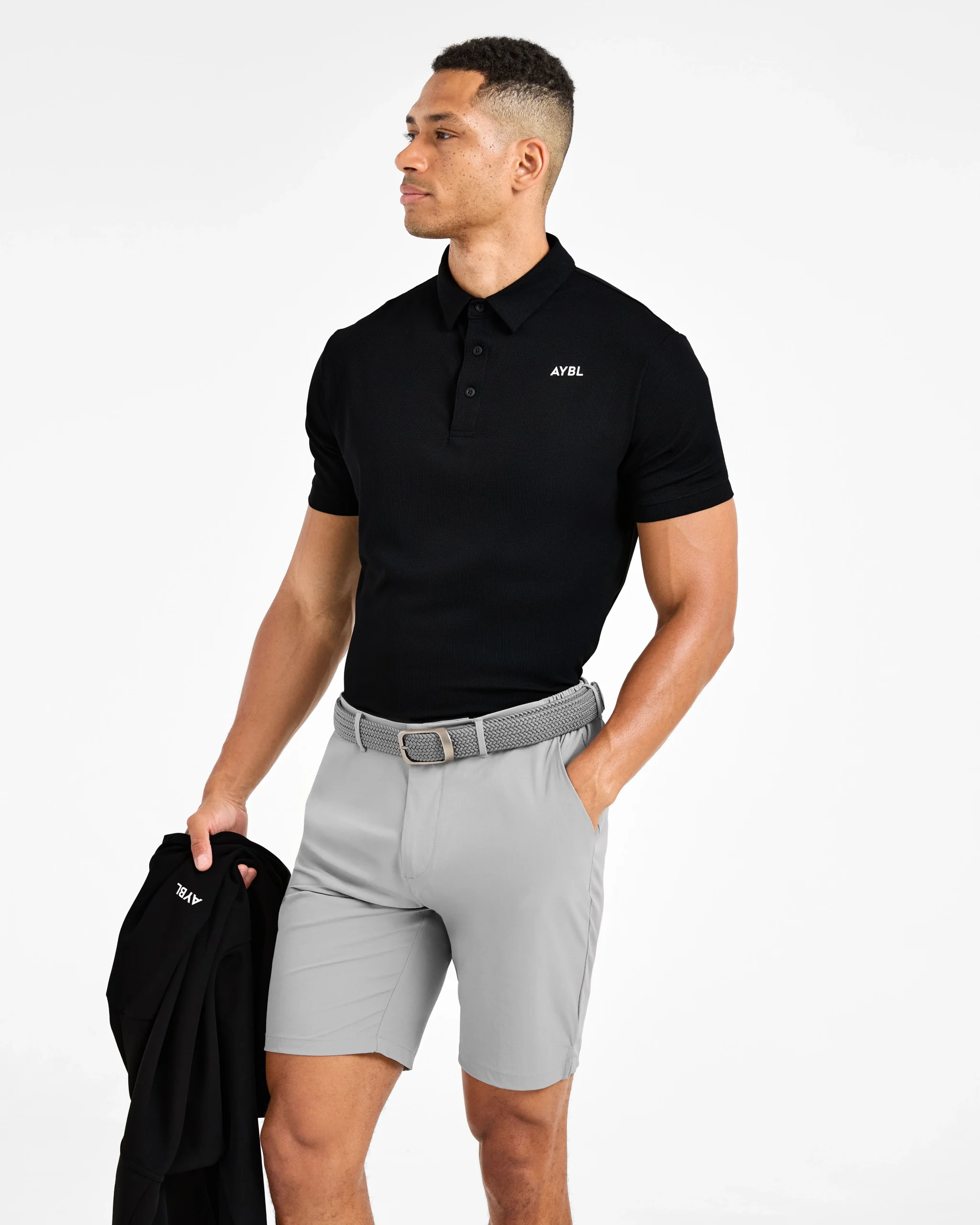 Voici notre polo Precision, le mix parfait entre style et fonctionnalité pour le golfeur moderne. Fait d’un tissu texturé doux et léger avec un peu d’élasticité, il te garde au frais et te permet de bouger facilement à chaque swing. Avec sa coupe polo classique à manches courtes et sa longueur polyvalente qui peut être portée rentrée ou sortie, il offre confort et confiance sur le terrain et en dehors. Il est fini avec un col classique et une patte de boutonnage avec des boutons AYBL.