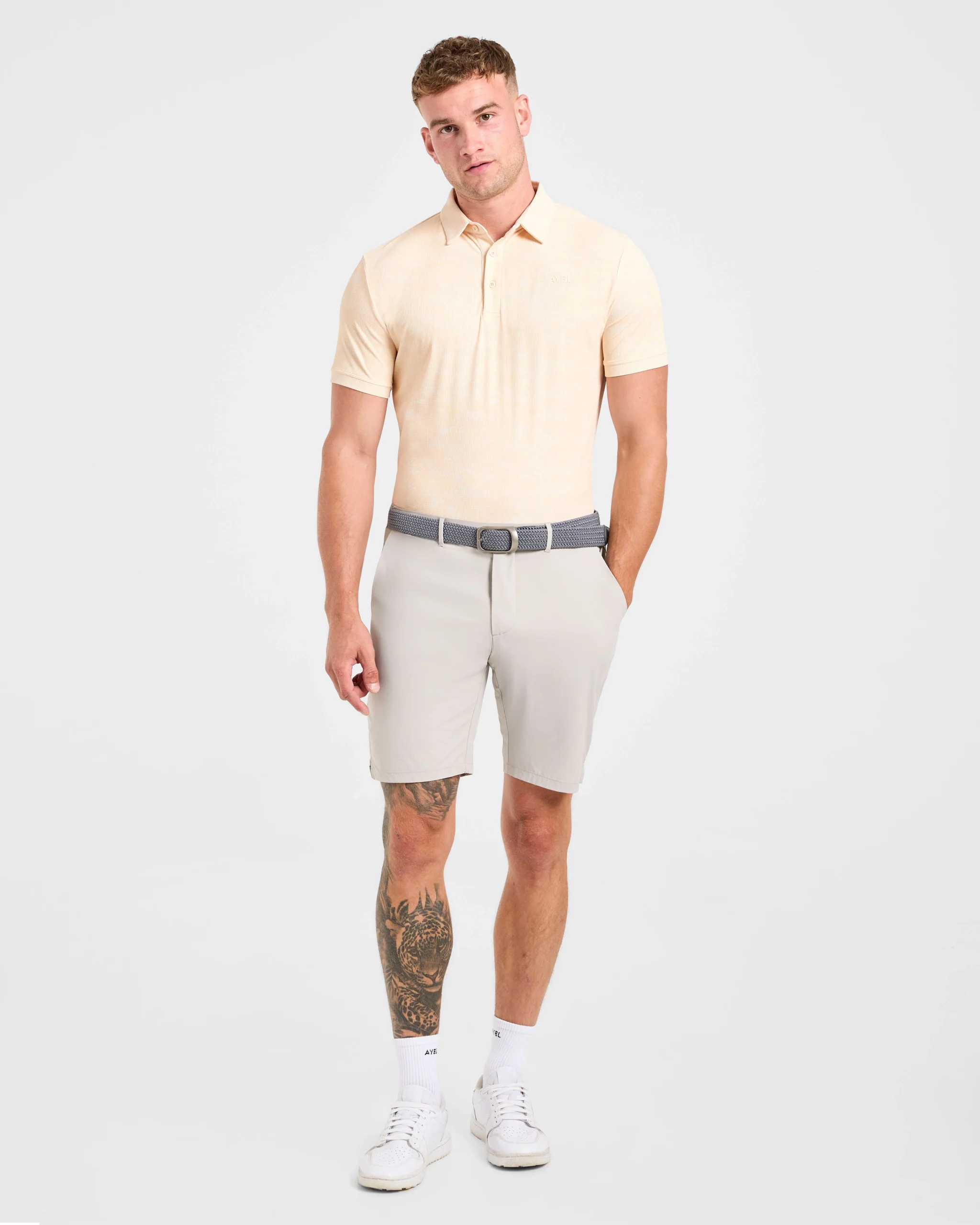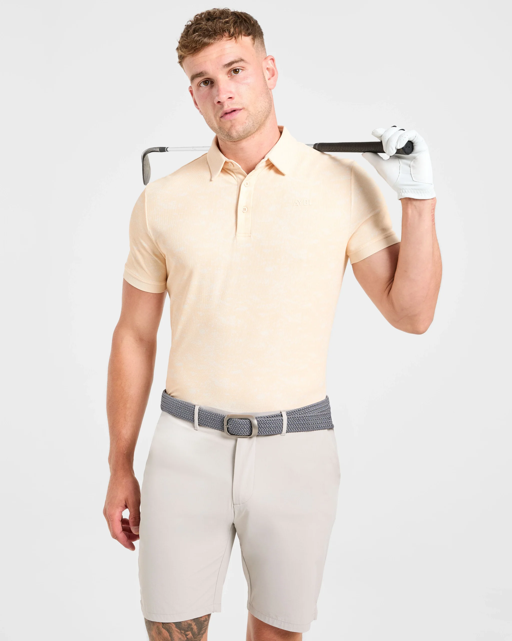 Voici notre polo Precision Texture, où style unique et performance optimale se rencontrent. Confectionné dans un tissu texturé doux, extensible et léger, il vous garde au frais et vous permet de bouger sans effort à chaque swing. Son imprimé estival audacieux affiche votre confiance, tandis que sa longueur polyvalente vous permet de le porter rentré ou à l’extérieur, pour un confort optimal tout au long de la journée, sur le terrain comme en dehors. Il est doté d’un col classique et d’une patte de boutonnage avec boutons griffés AYBL.