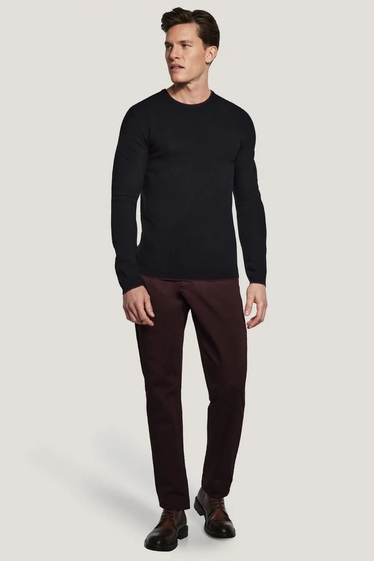 Description: Ce pull col ras du cou en pure laine se distingue par sa coupe soignée et son col pensé pour un ajustement confortable, idéal sous une veste sur mesure. Confortable et raffiné, il incarne un essentiel élégant et polyvalent. Conçu avec une attention particulière aux détails, il associe allure moderne et savoir-faire de qualité.