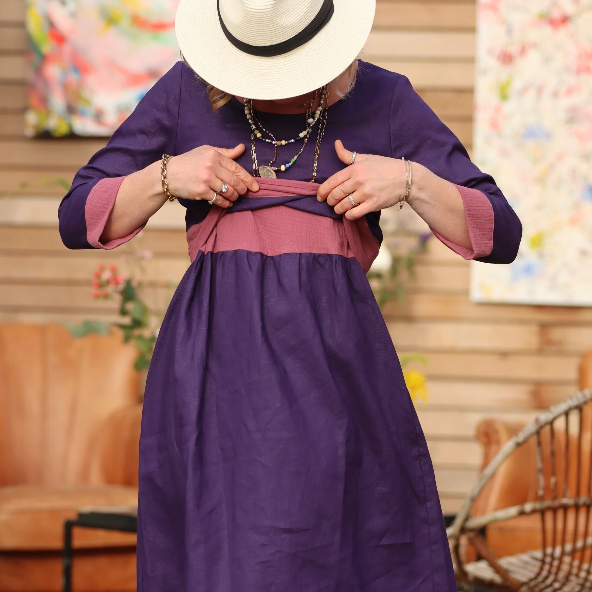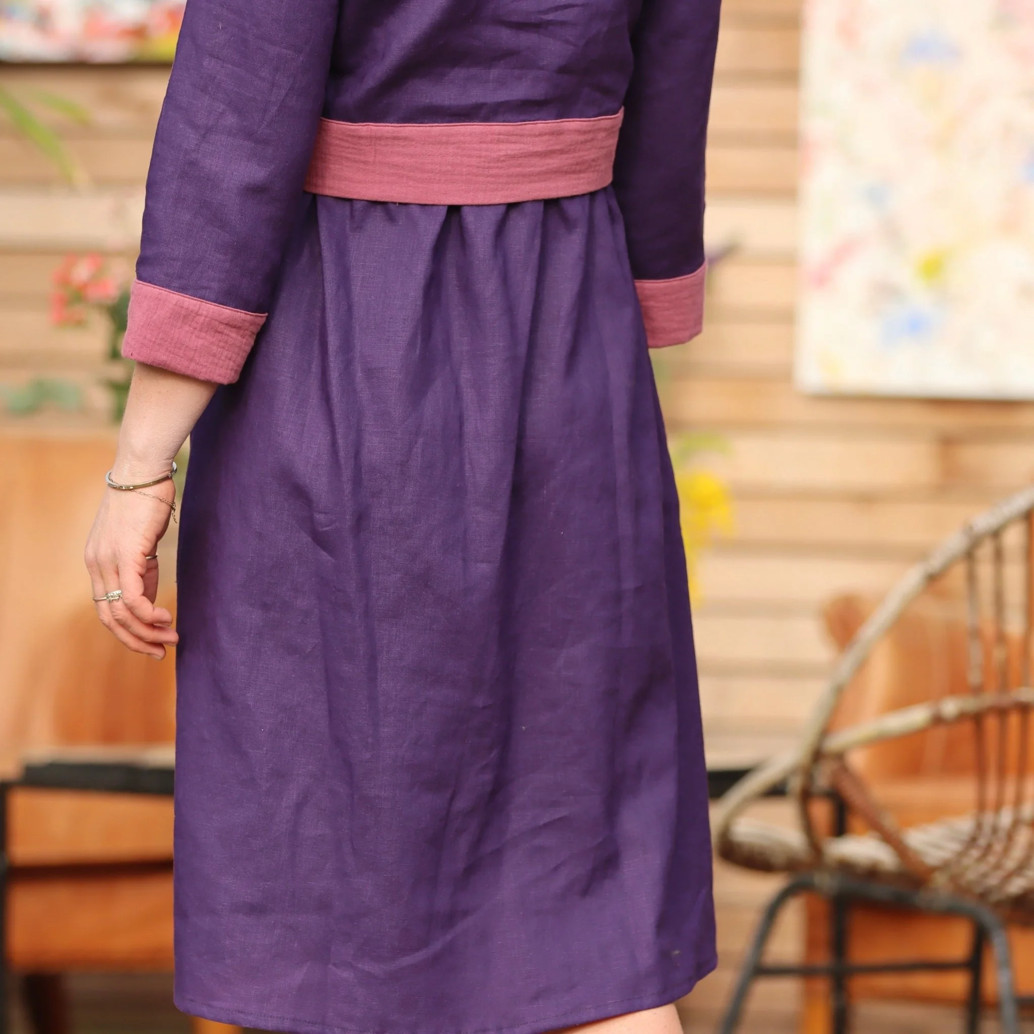 Robe Alix – lin prune/gaze de coton violine
