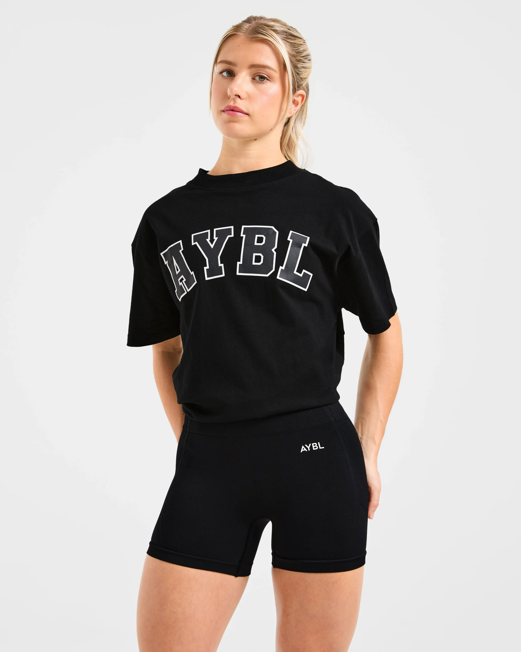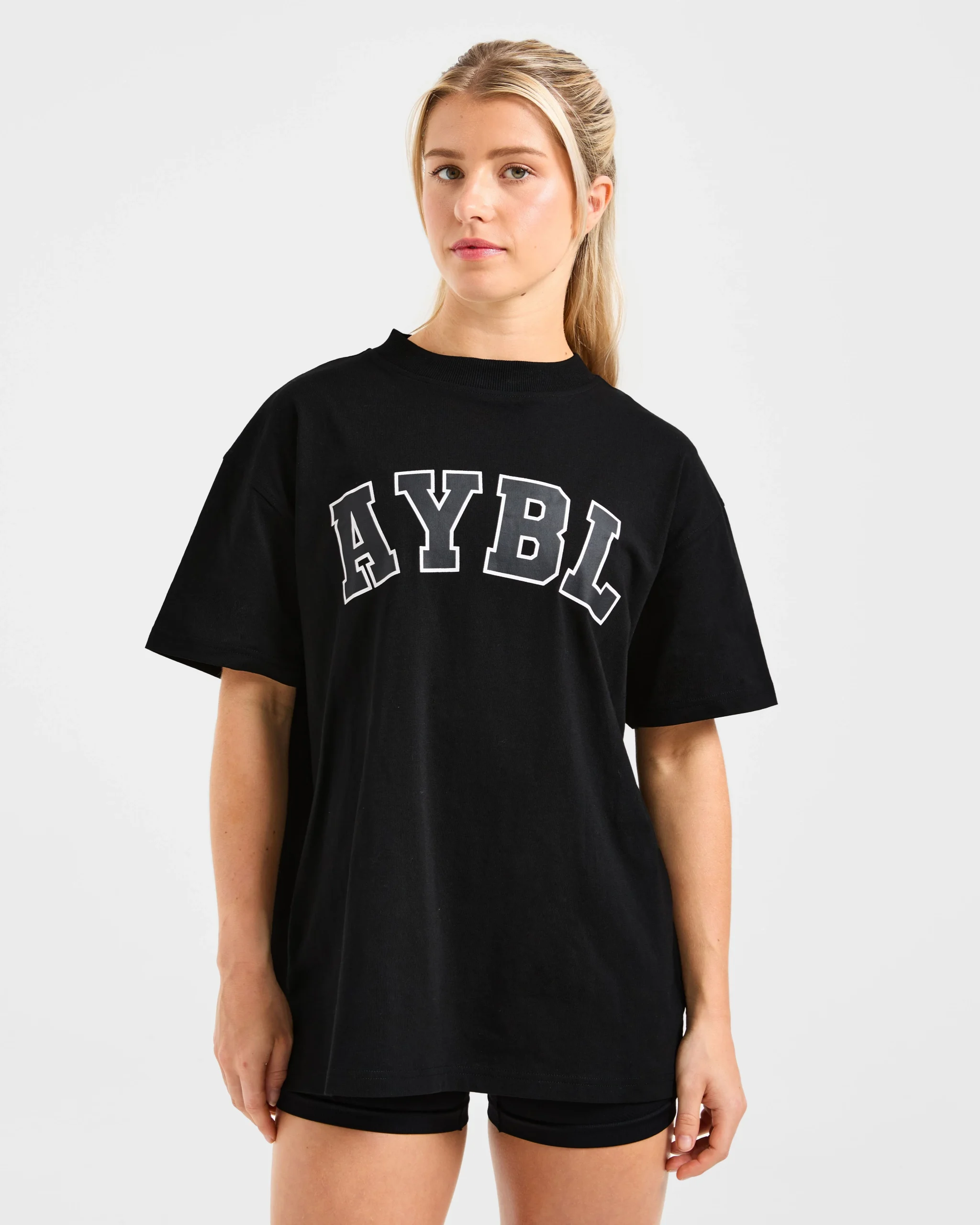 Découvrez le t-shirt oversize Varsity 2.0, votre nouveau t-shirt incontournable! Avec son tissu ultra-doux, ses épaules tombantes confortables et son col côtelé doux, il est synonyme de confort et de style. Orné du logo Varisty AYBL sur le devant, c’est le choix idéal pour les journées à la salle de sport ou pour se détendre.