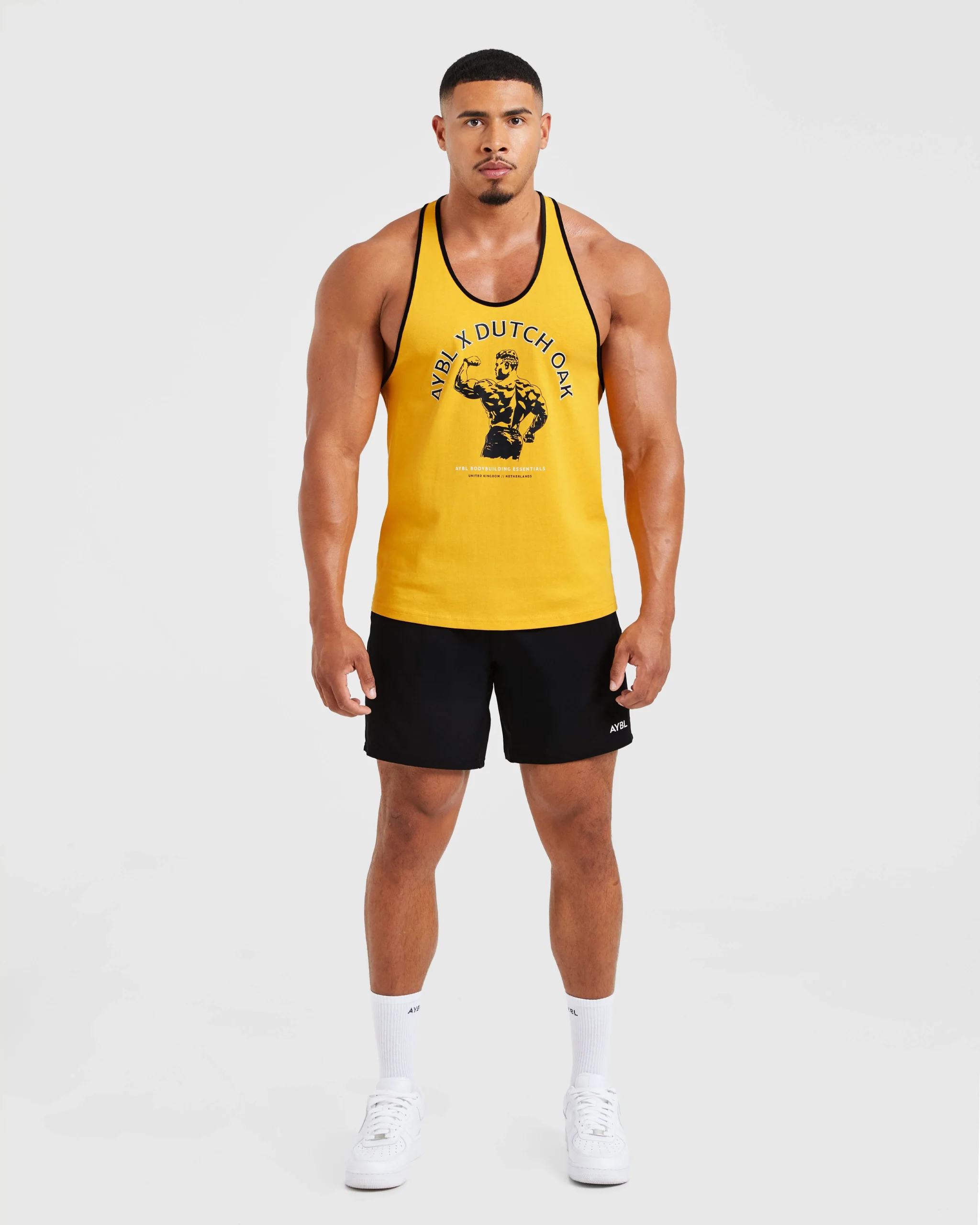 Modernisez votre garde-robe de sport avec le stringer Wesley Vissers X Dutch Oak. Orné d’un imprimé graphique sur la poitrine, inspiré du légendaire culturiste Wesley Vissers. Confectionné dans un tissu en coton doux, avec des emmanchures tombantes et une coupe stringer pour mettre en valeur vos muscles.